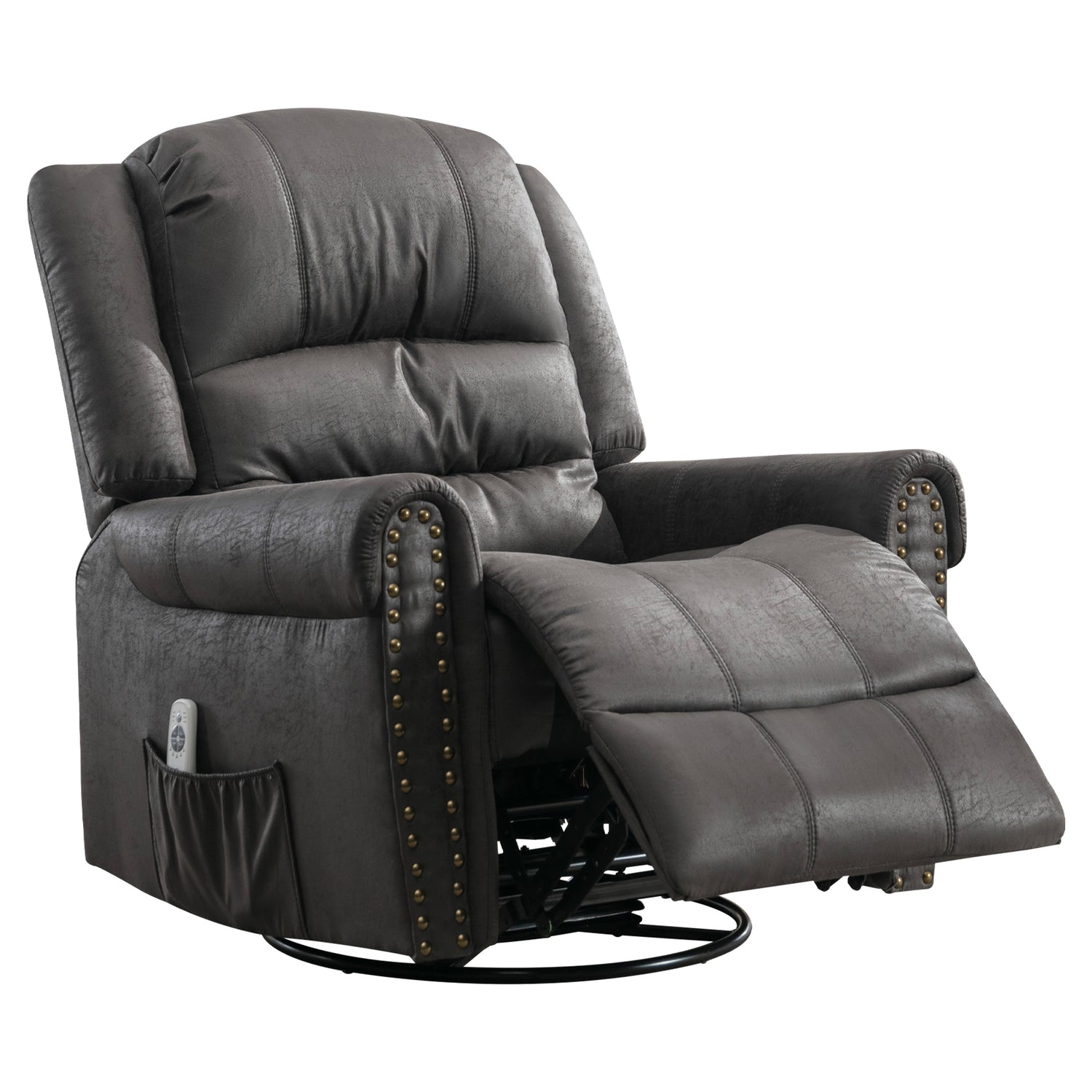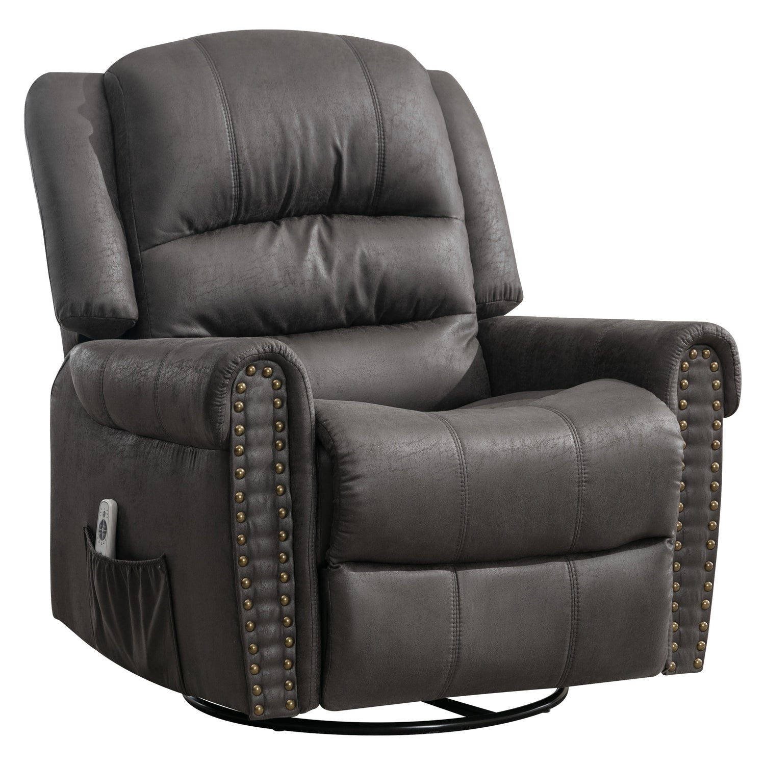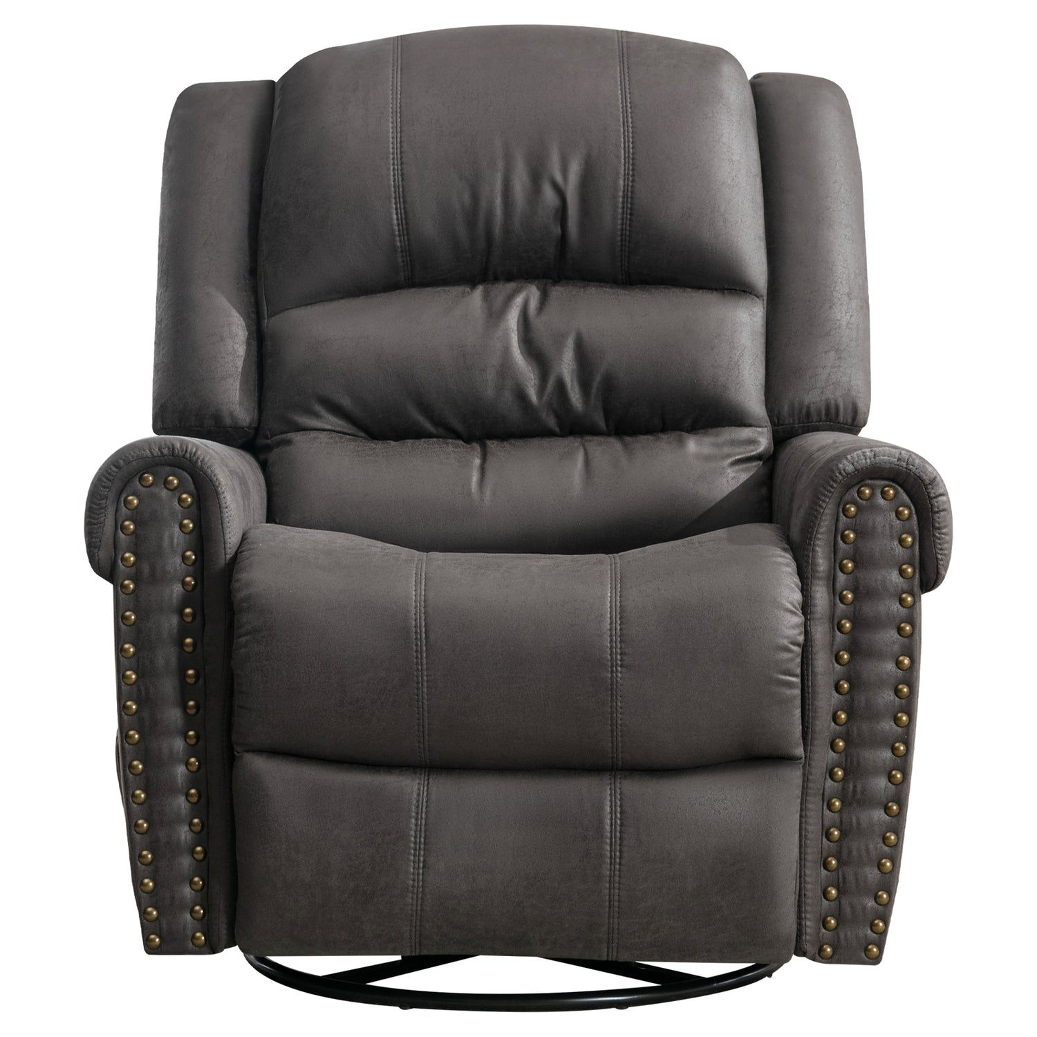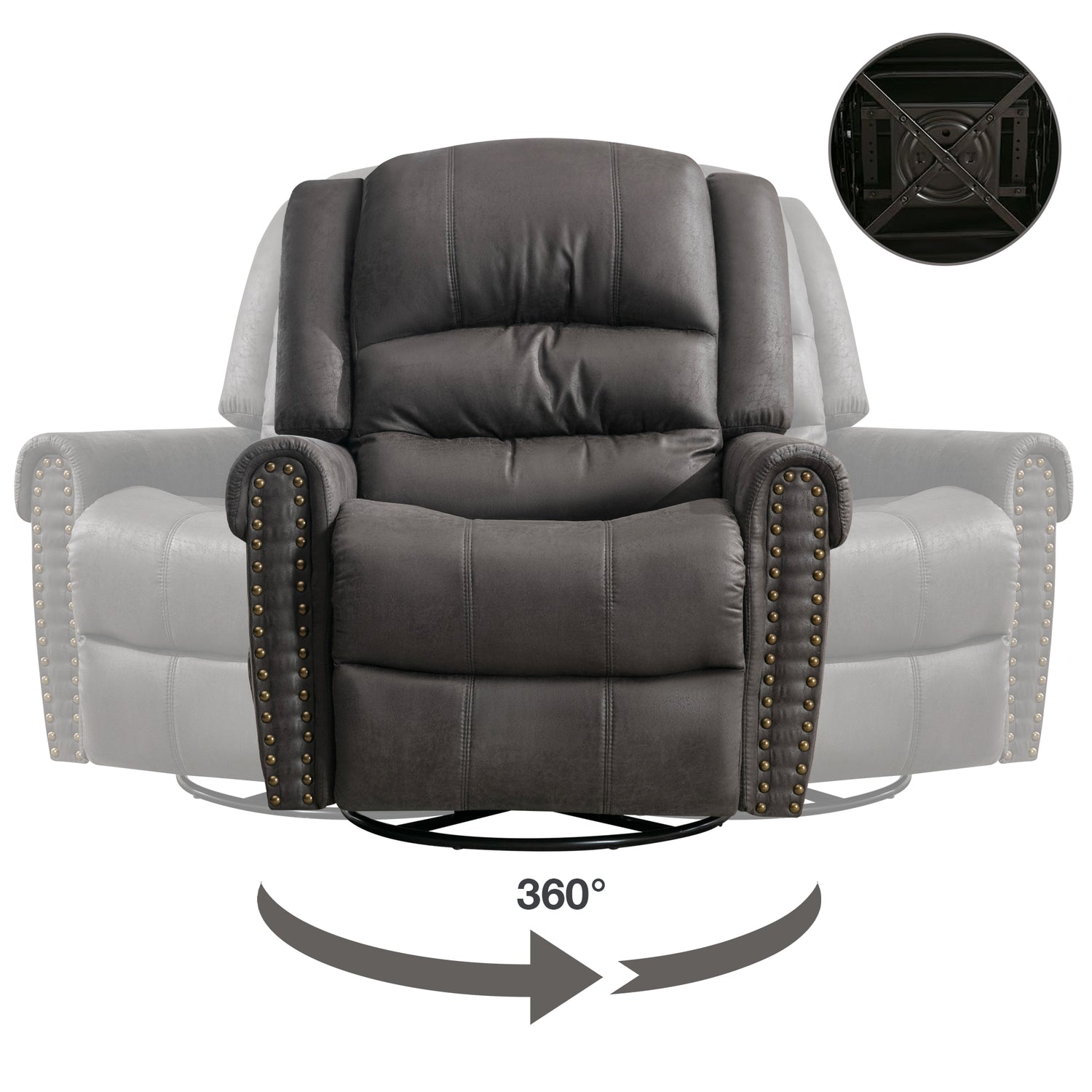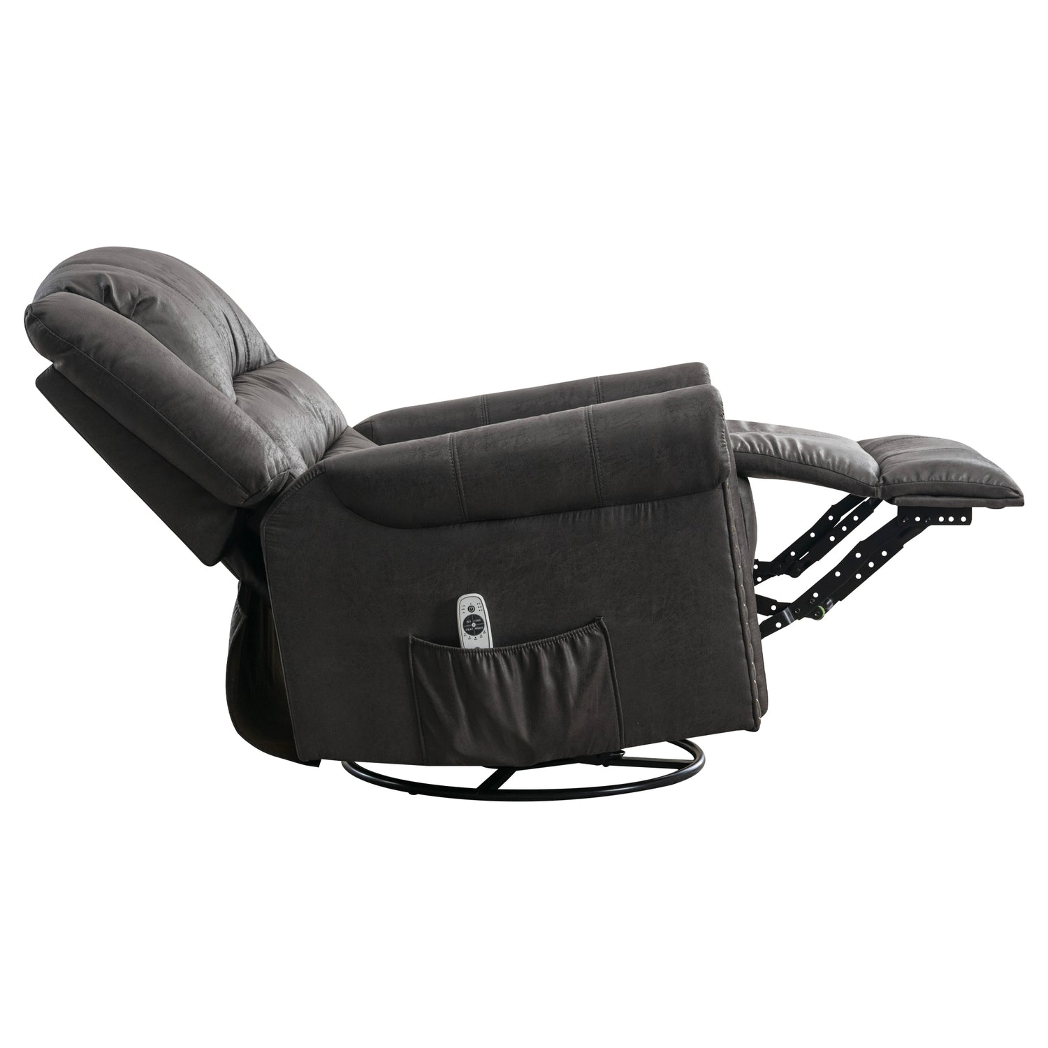SYNGAR Swivel Rocker Recliner Chair for Living Room, Manual Reclining Chair Oversized with Heat and Massage Function, USB, Soft Fabric Rocking Sofa Glider Chair for Bedroom Home Theater, Gray