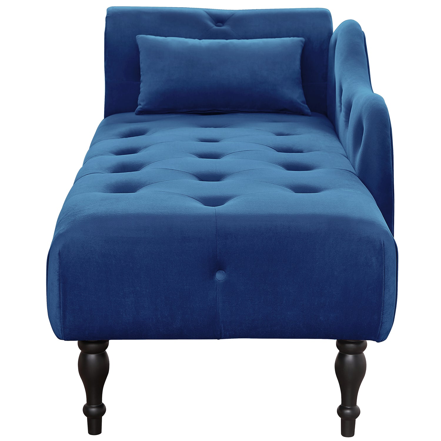 SYNGAR Tufted Upholstered Velvet Rolled Arm Chaise Lounges Indoor Chair, Right Arm Facing Chaise Lounge with Pillow, Nailhead Trim and Solid Wood Legs for Living Room Bedroom Office, Blue
