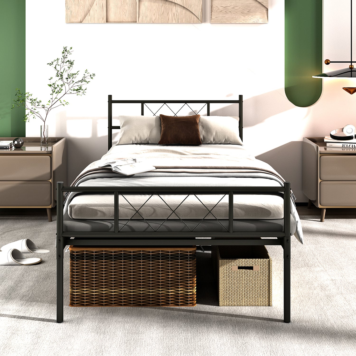 Experience the perfect blend of style, functionality, and comfort with our Modern Metal Twin Bed Frame. Designed with a contemporary aesthetic, this twin platform bed is an elegant addition to any bedroom. The headboard and footboard add a touch of sophistication while providing support and comfort. Crafted from high-quality metal, this bed frame promises durability and noise-free use, ensuring a peaceful night's sleep. Plus, there's no need for a box spring, making this bed a cost-effective choice. With easy assembly, this bed is perfect for kids and a great option for guest rooms, college dorms, or small apartments. Invest in this twin bed frame and transform your sleeping space into a modern haven.