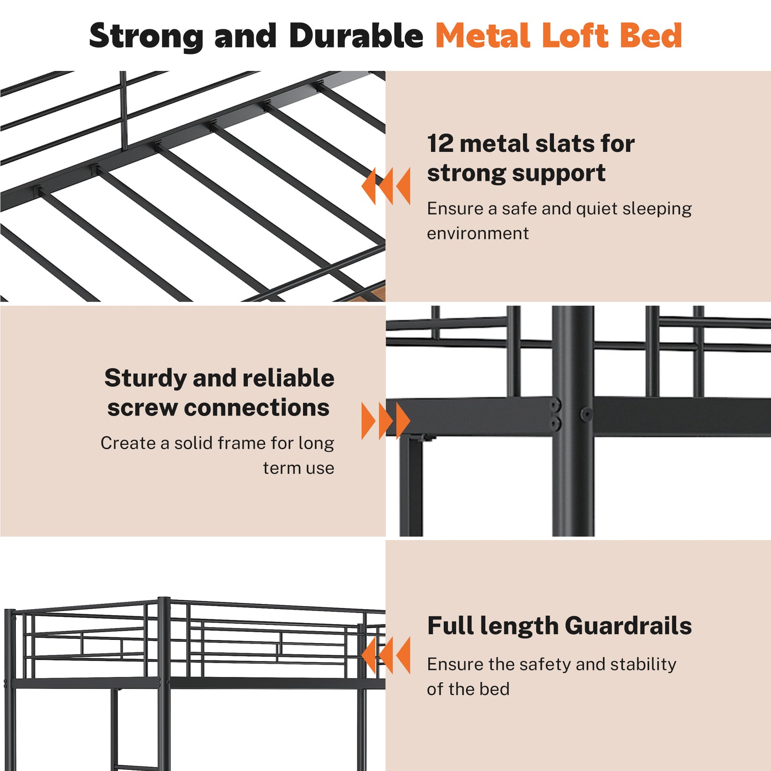 - Sturdy & Durable Design: Constructed from a heavy: duty steel frame, in a minimalist design, the loft bed frame includes sturdy metal slats.