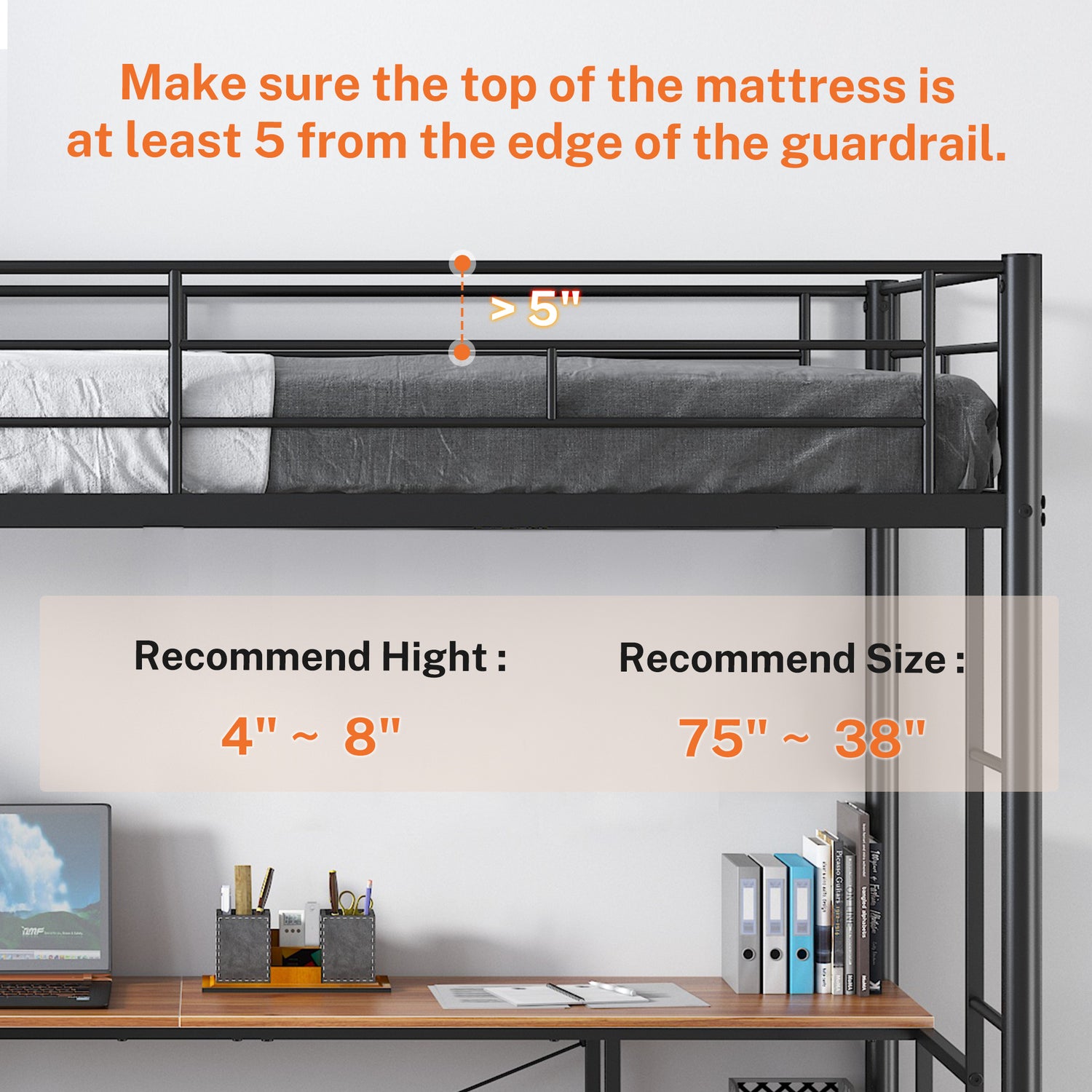 - No Box Spring Needed: With reliable and closely spaced metal slats of the loft bed frame, spring mattress without the need for a box spring.