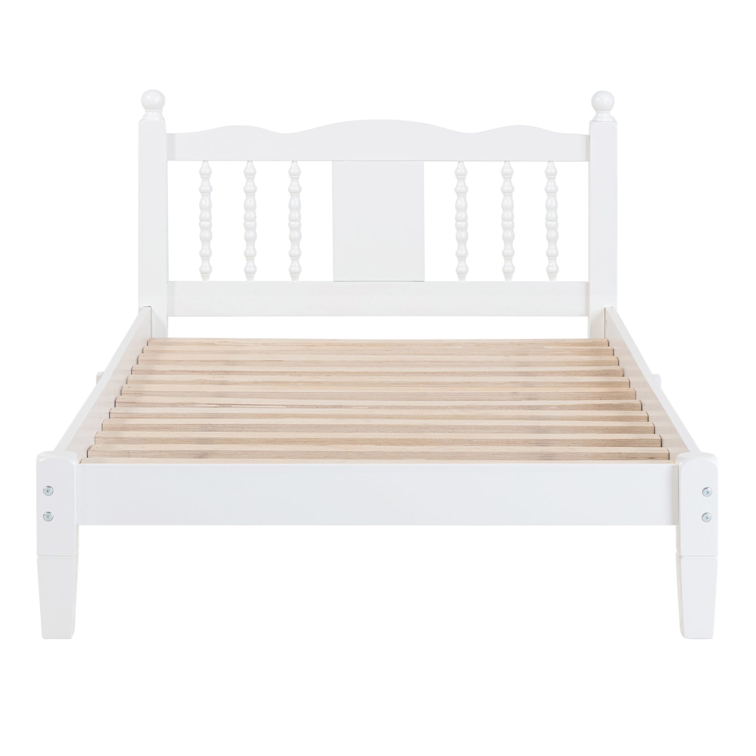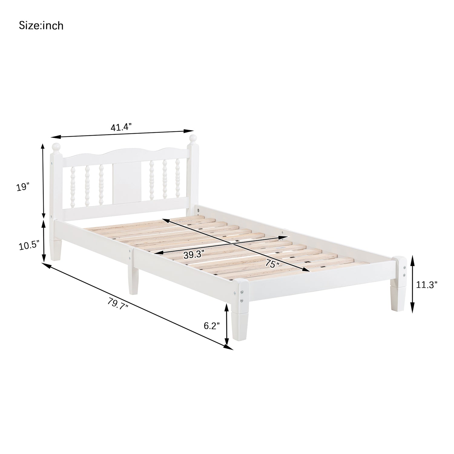 SYNGAR Twin Size Bed Frame with Columns Decor Headboard, Wood Twin Platform Bed Frame with Wood Slat for Apartment, Easy Assembly, No Spring Box Need, White