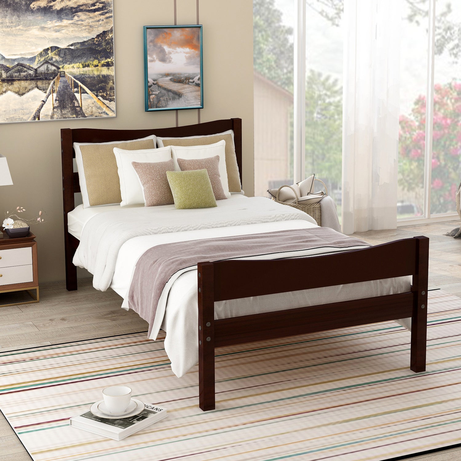Including a headboard, low footboard, strong wooden slats to support your memory foam, latex, or spring mattress (not included). The large under-bed space is available for you to sore your stuff, convenient, and space-saving.