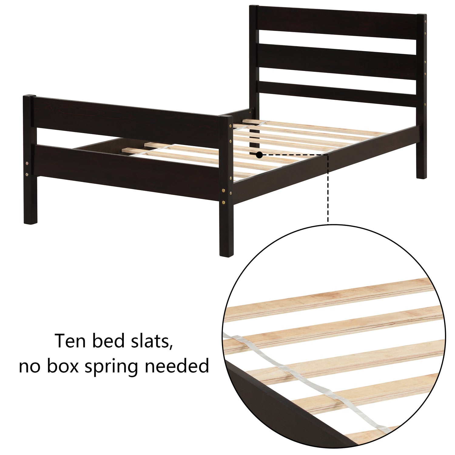 No Box Spring Needed - This twin-size bed frame comes with strong wooden slats, a box spring mattress is not required.