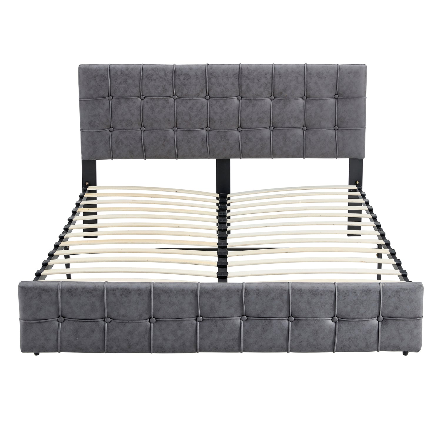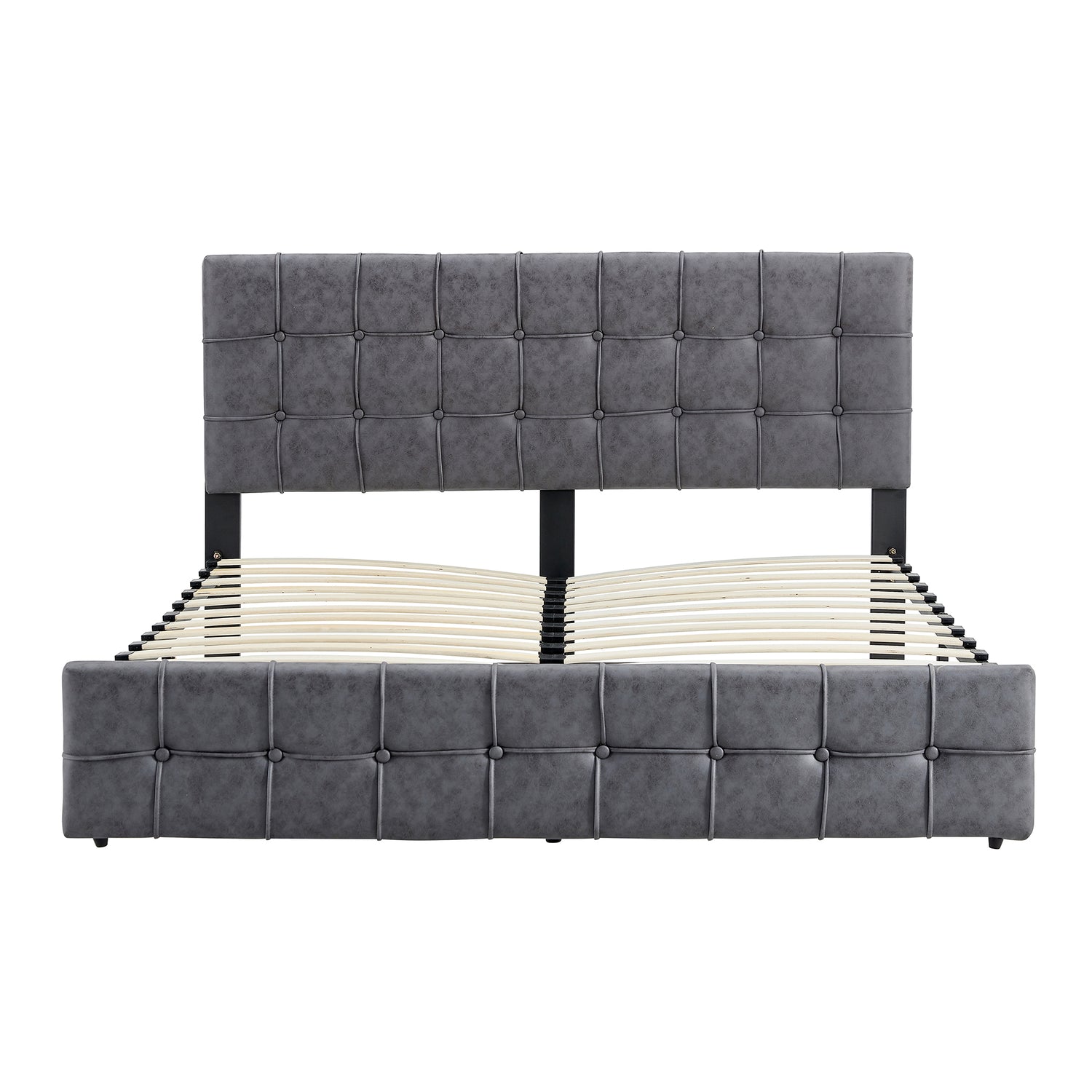 SYNGAR Upholstered King Size Fabric Platform Bed Frame with Button Tufted Headboard, Load-Bearing 650LBS, Gray