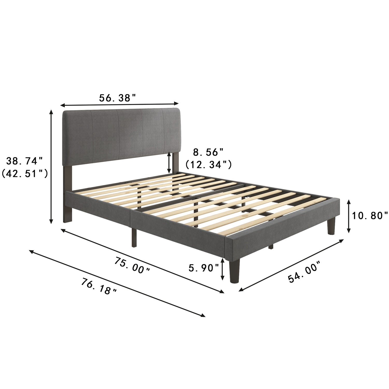 SYNGAR Upholstered Platform Bed Frame Full Size with Height Adjustable Headboard, Full Bed Frame with Strong Slat Support, Bedroom Furniture, Noise Free, No Box Spring Needed, Gray