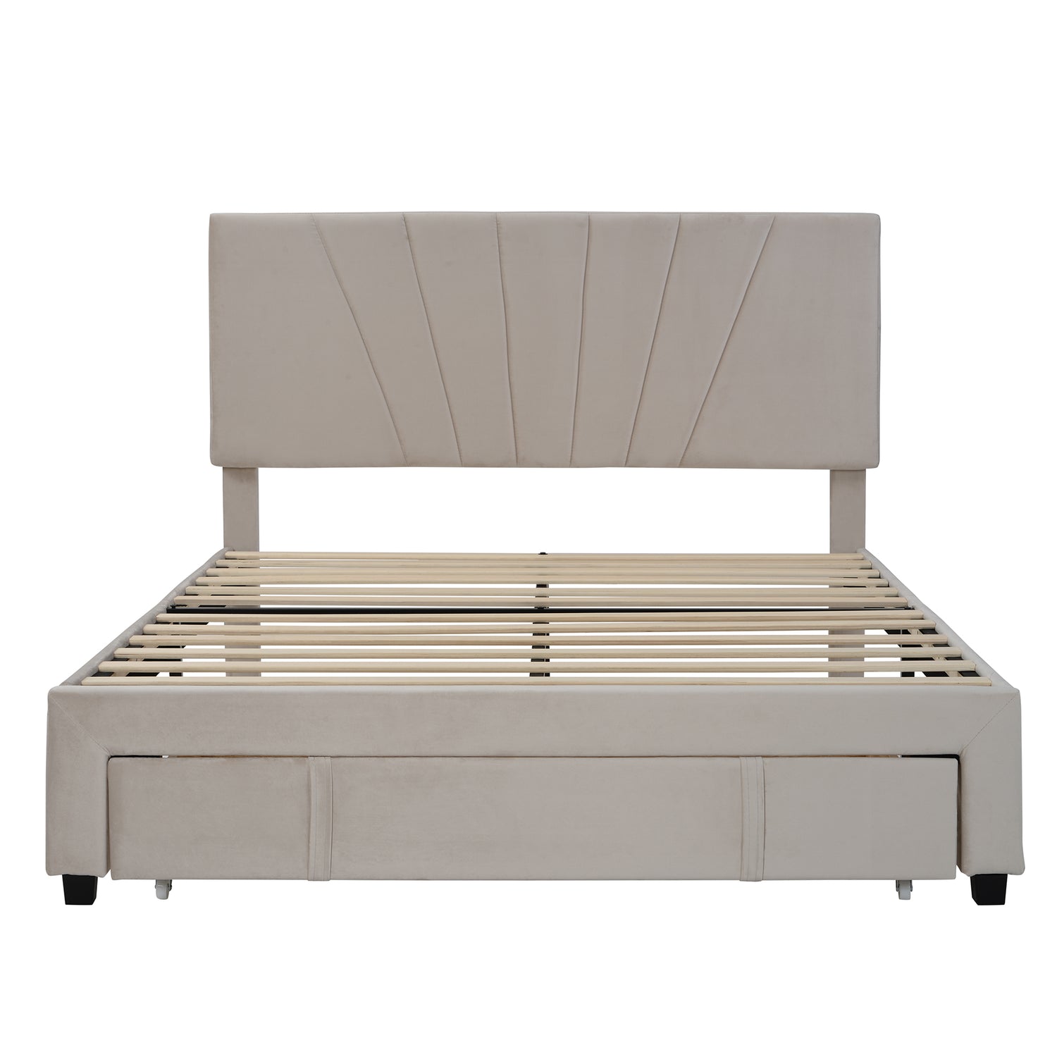 SYNGAR Upholstered Queen Platform Bed Frame with Storage Drawers, Queen Size Storage Bed with Velvet Headboard, Mattress Foundation with Strong Slats, No Box Spring Needed, Noise Free, Beige