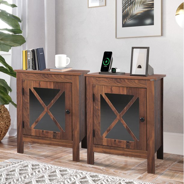 Sturdy Frame --- This side table is very sturdy, with a high-quality wood frame and glass door. It's small but sturdy and well-made for your long-term use.