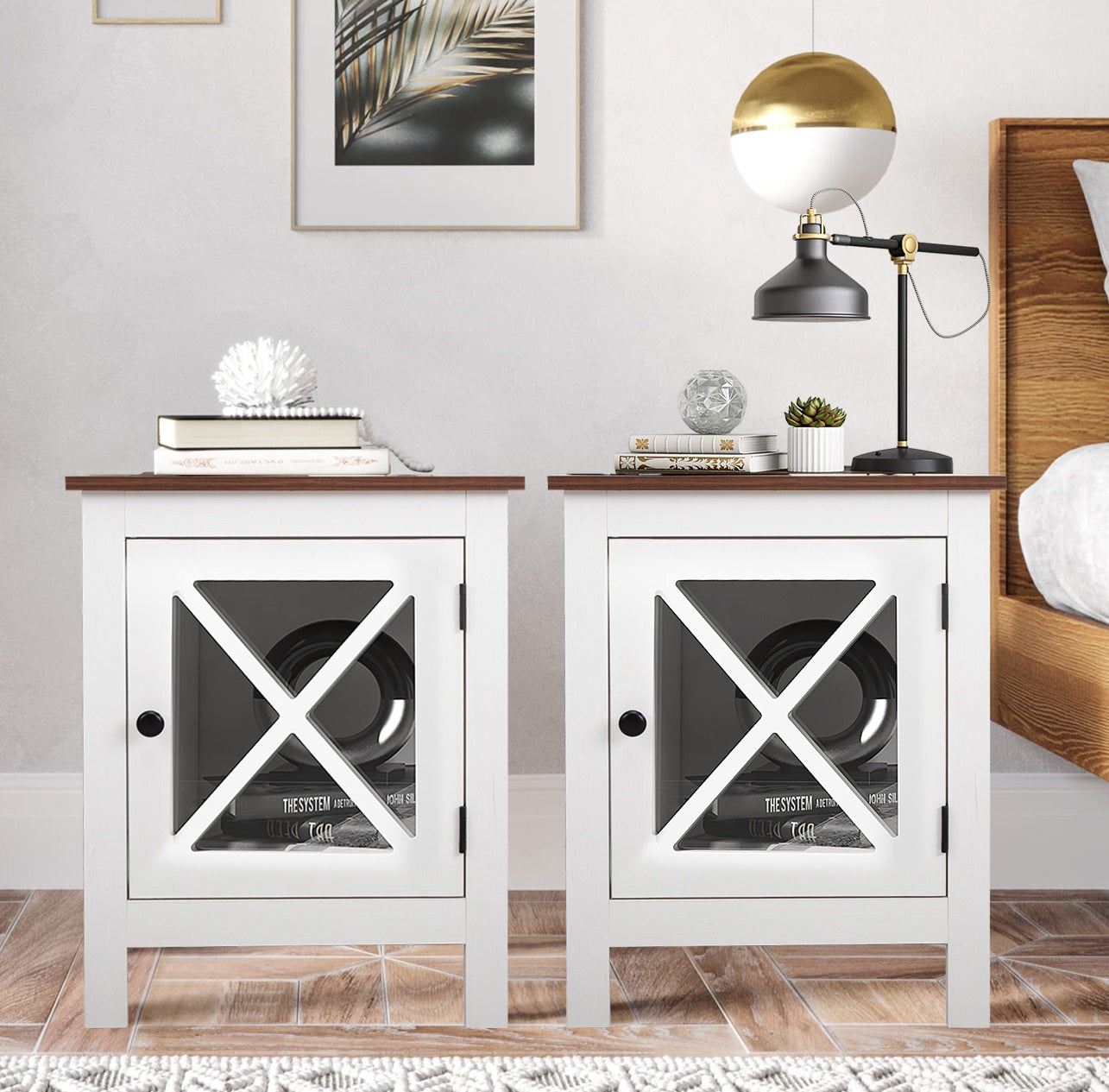 Sturdy Frame --- This side table is very sturdy, with a high-quality wood frame and glass door. It's small but sturdy and well-made for your long-term use.