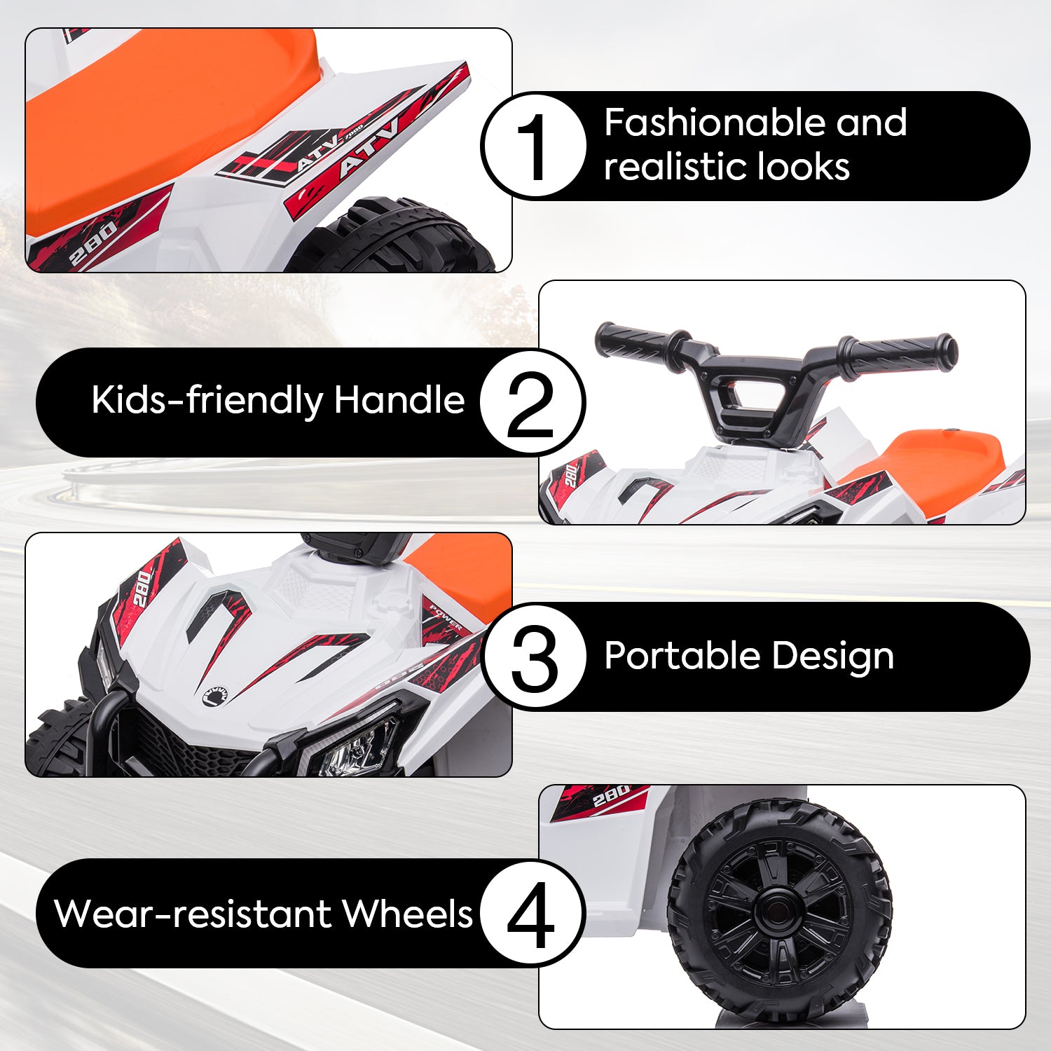 SYNGAR White Kids ATV, 6V Ride on Car with One-button Start and Rechargeable Battery, Electric Ride on Toy for 1.5-2.5 years Boy Girls