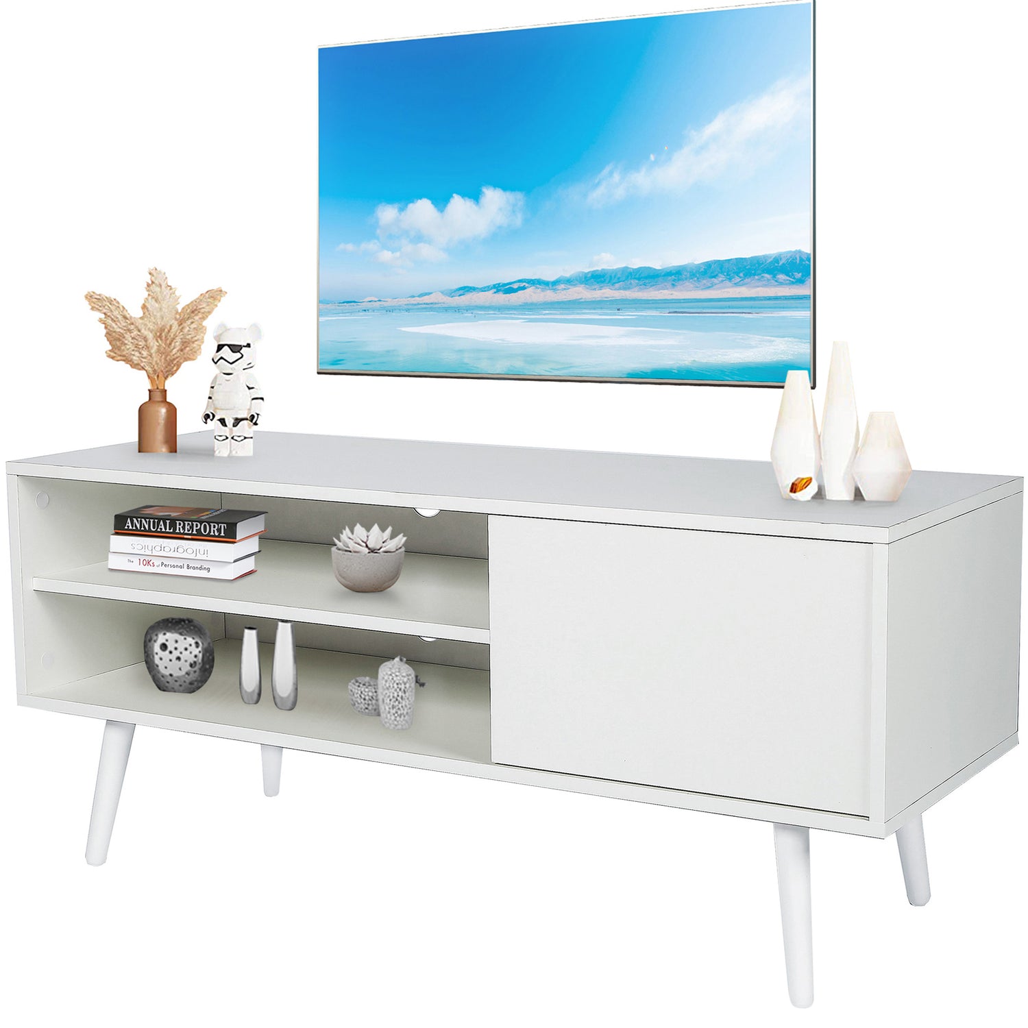 Perfect for Your Home - The modern design of the TV cabinet with 2 cabinets and 3 Interior shelves is perfect for your home.