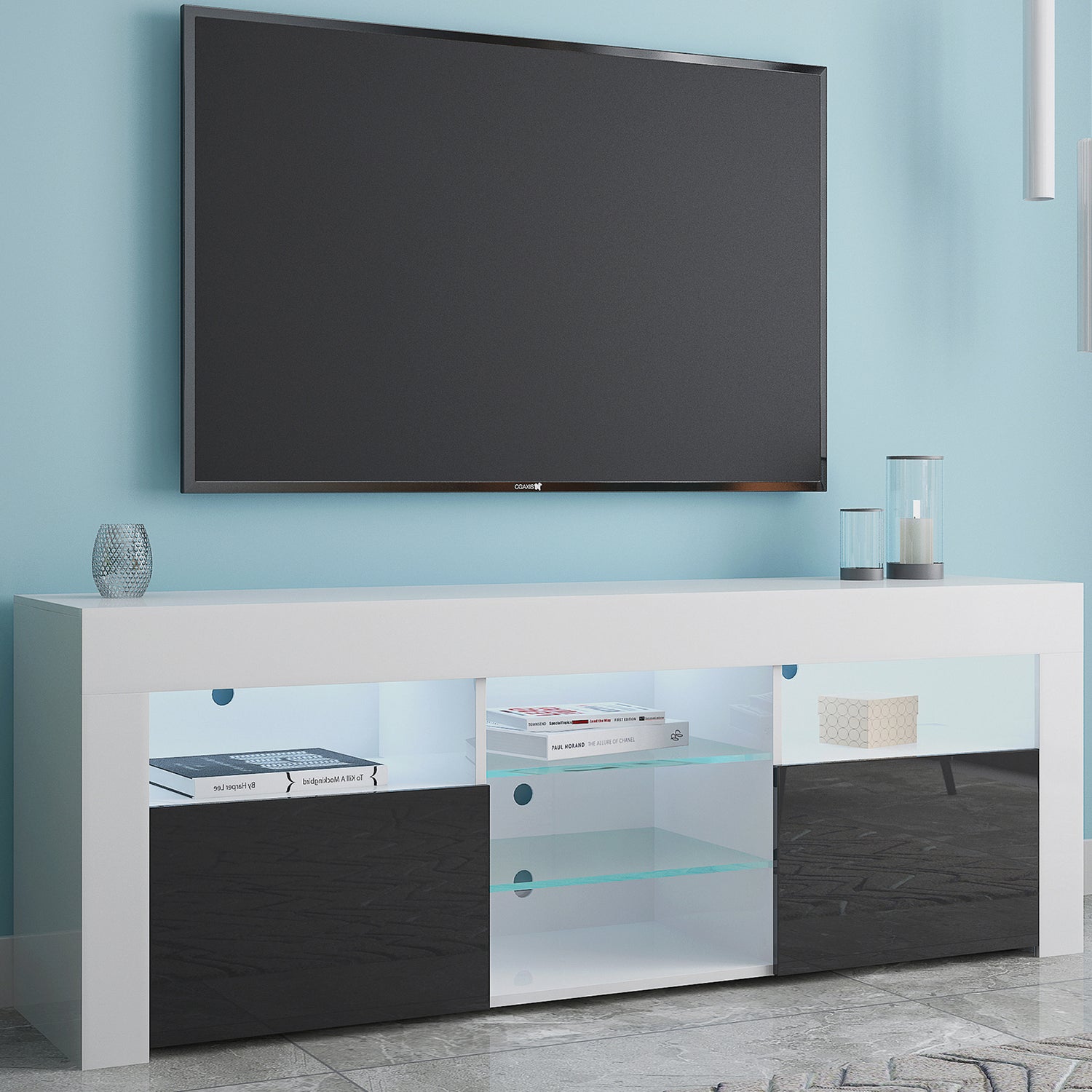 Easy to Clean - The surface of the TV stand is a UV high-gloss panel that is easy to clean while making the product look fashionable and modern.