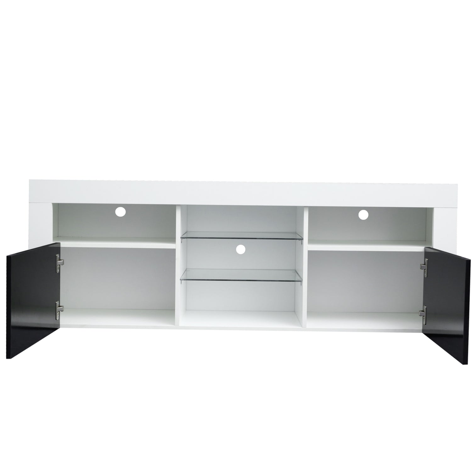 Exclusive & Durable - Simple high gloss fronts and matte texture body make this TV stand both exclusive and durable.