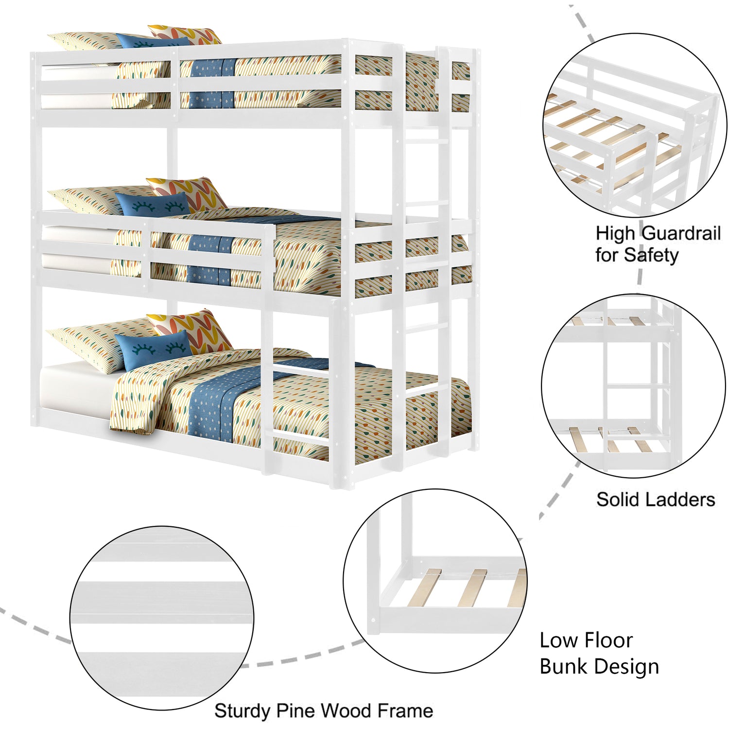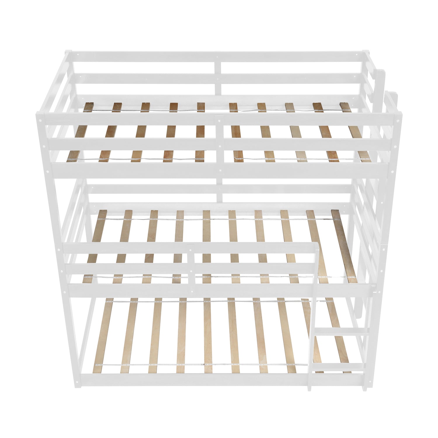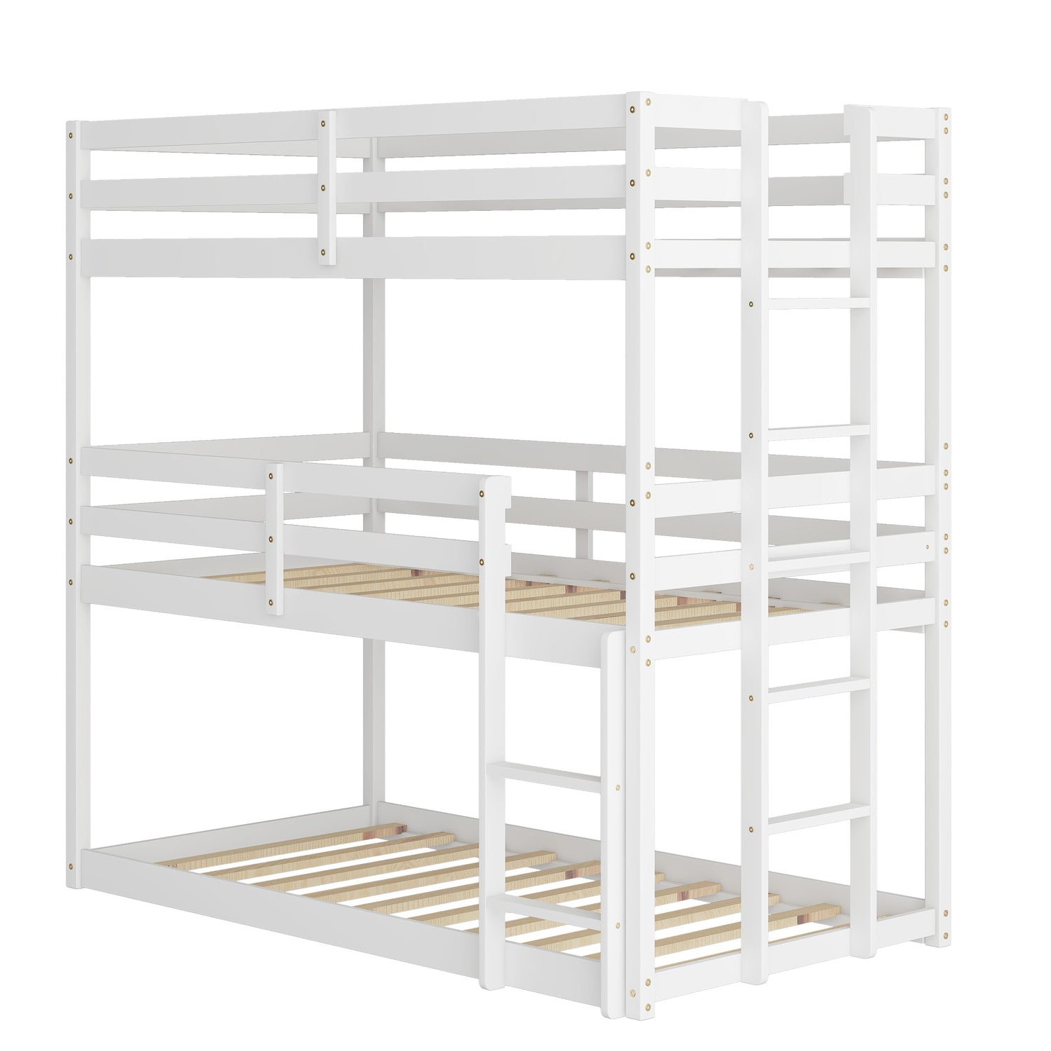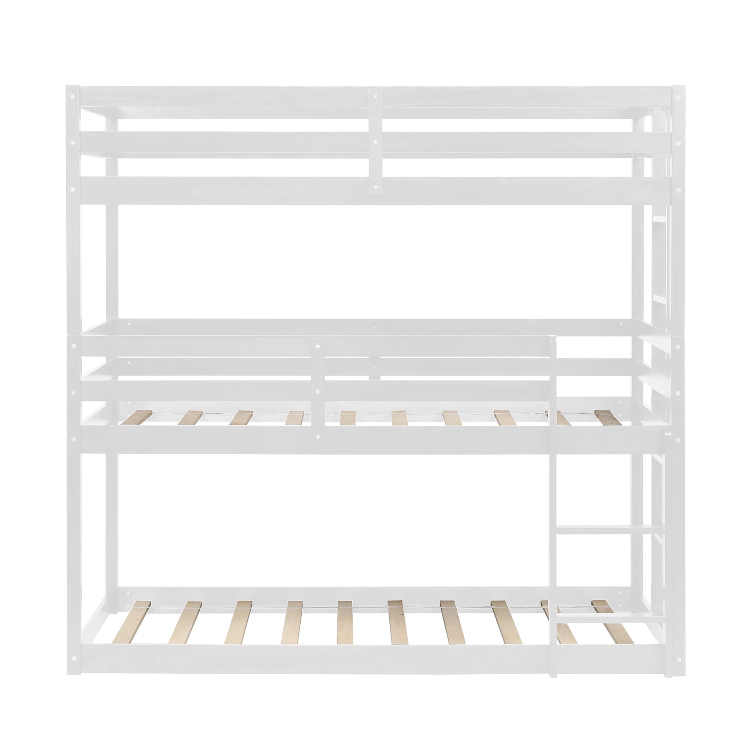 SYNGAR White Wood Triple Bunk Bed Frame for Kids, 3 Twin Bed Triple Floor Bunk Bed with Ladders, Adjustable Detachable Design 3 Bed Frame, No Box Spring Needed, Twin Over Twin Over Twin