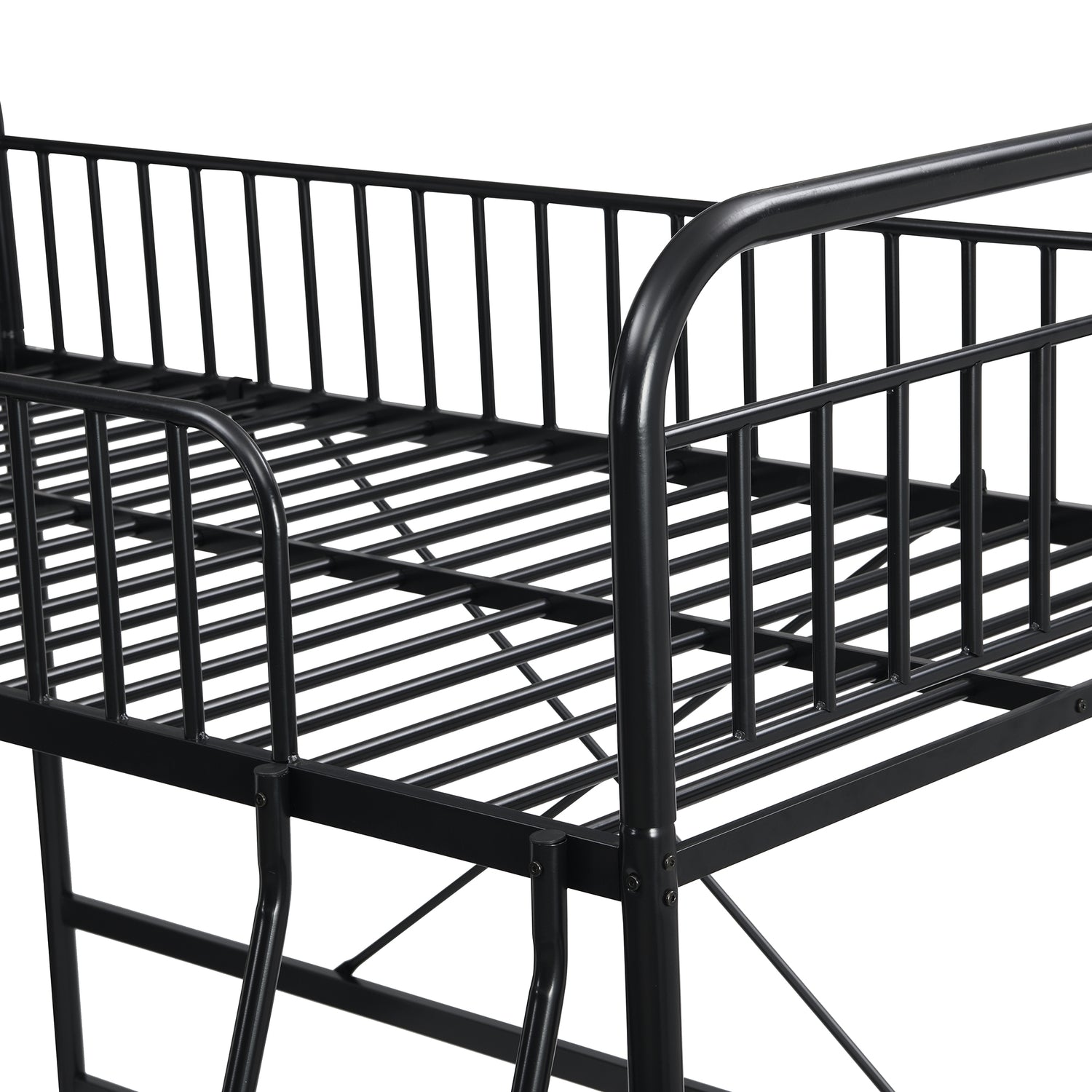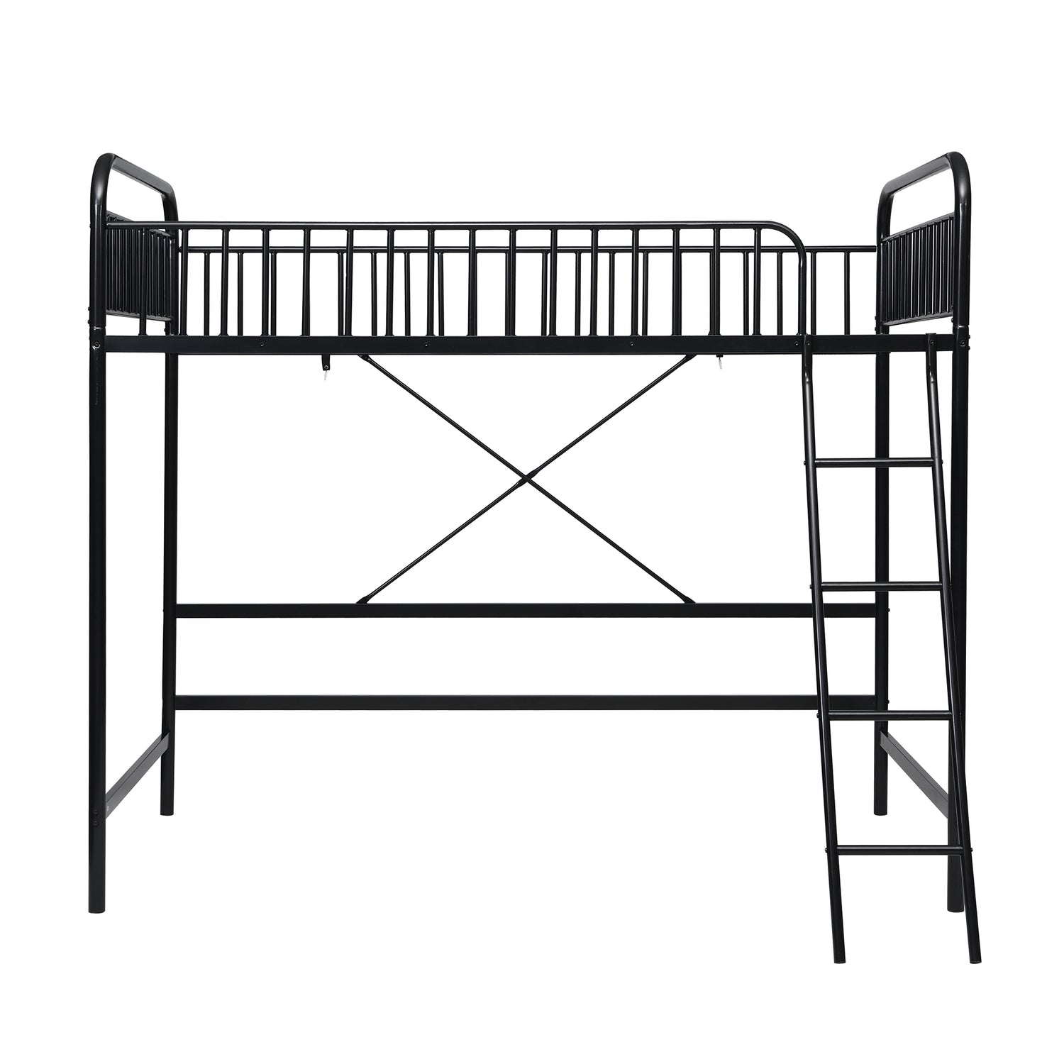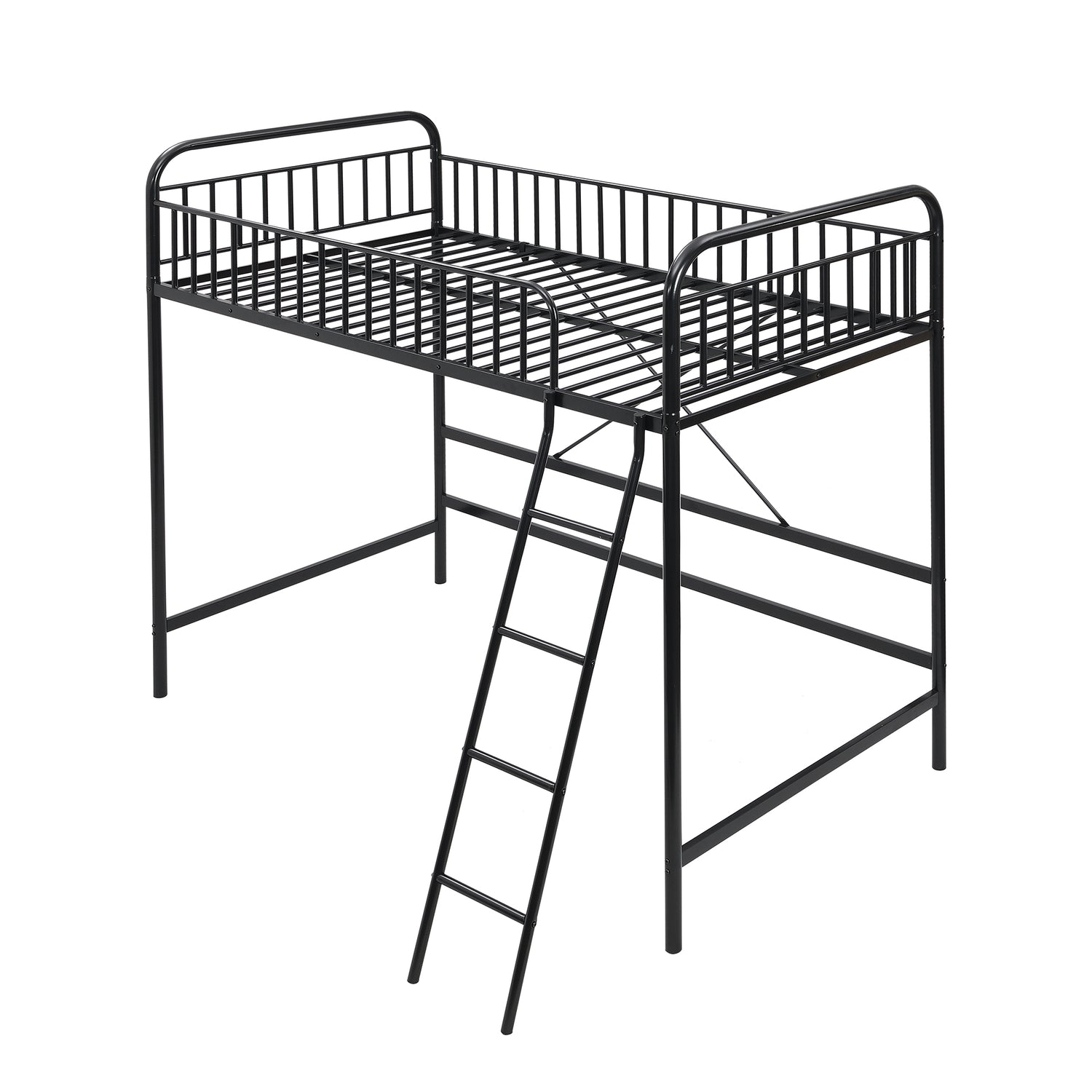 Twin Loft Bed Frame for Teens Kids, Metal Bed Frames in Twin w/ Guardrail and Underneath Space for Bedroom, Black, LJ436