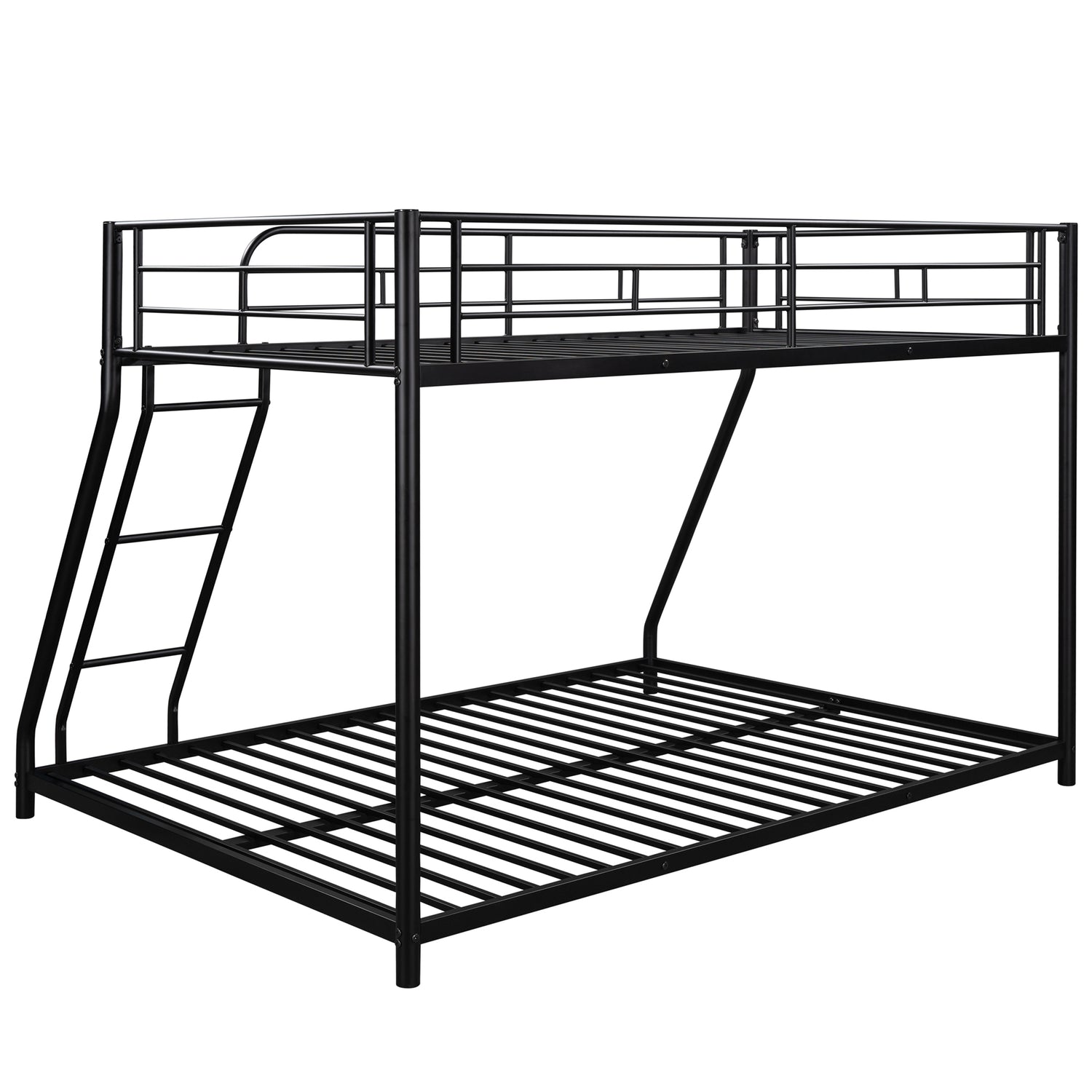 Twin Over Full Bunk Bed with Safety Rails & Ladder, Metal Bed Frame for Dorm Room Kids Bedroom Furniture Heavy Duty Steel Bunk Bed for Boys Girls Teens Adults, Black