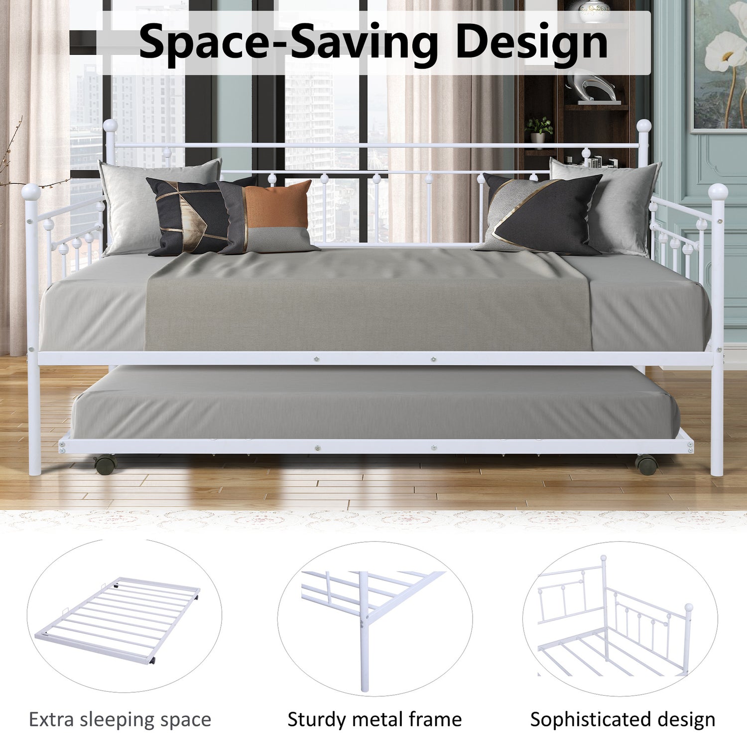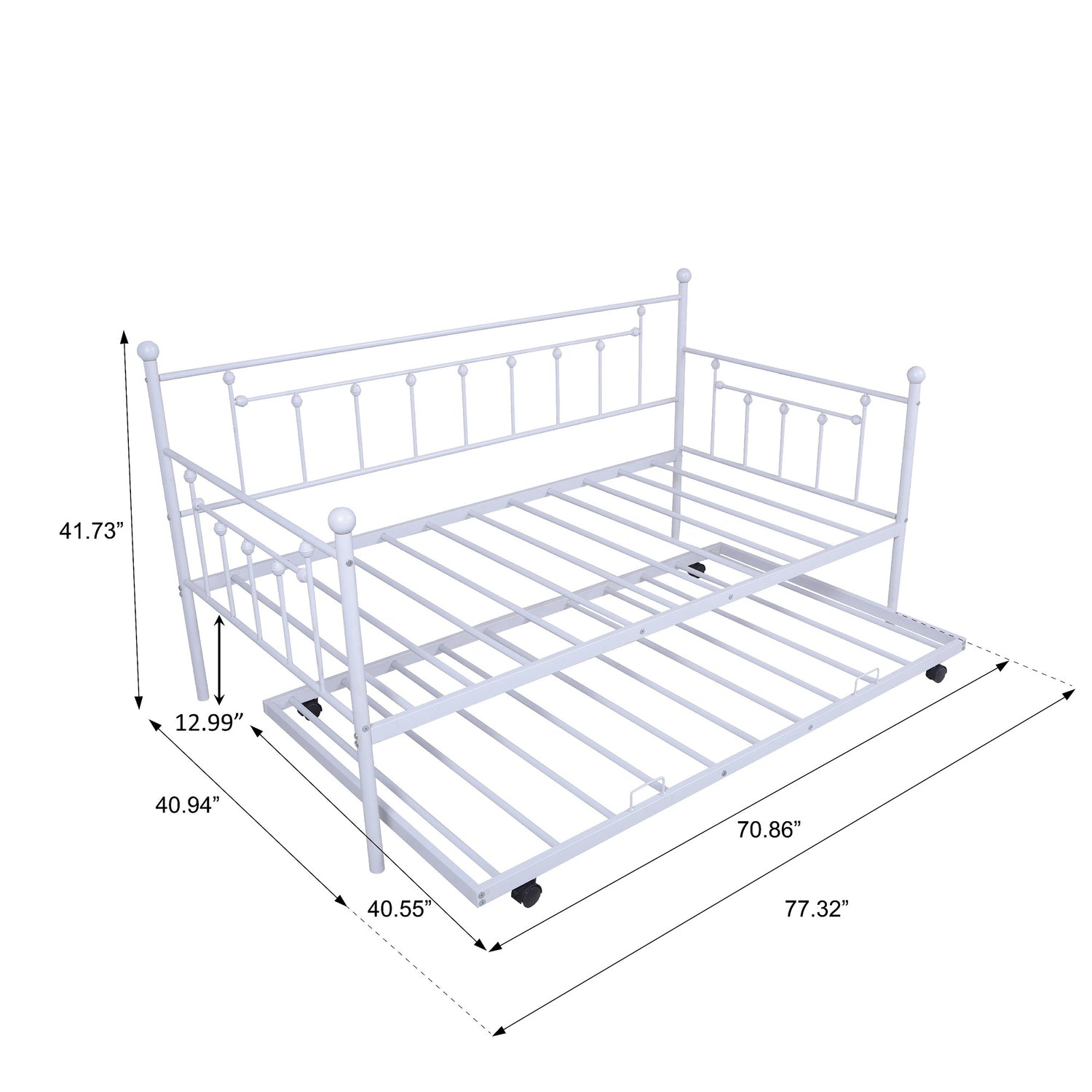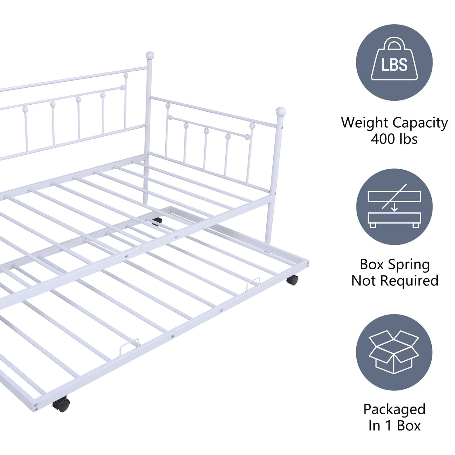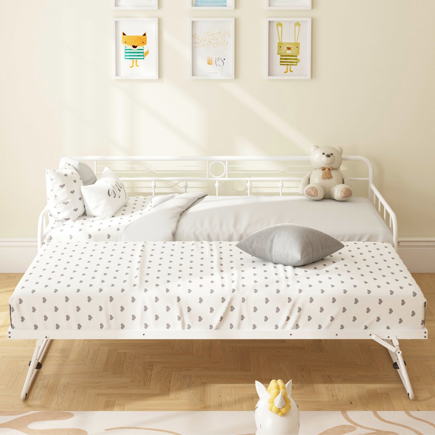 SYNGAR Daybed with Trundle, Twin Size Metal Daybed with Pop Up Trundle, Sofa Bed Day Beds Frame, Bedroom Living Room Furniture for Kids Boys Girls Adults Guest, White