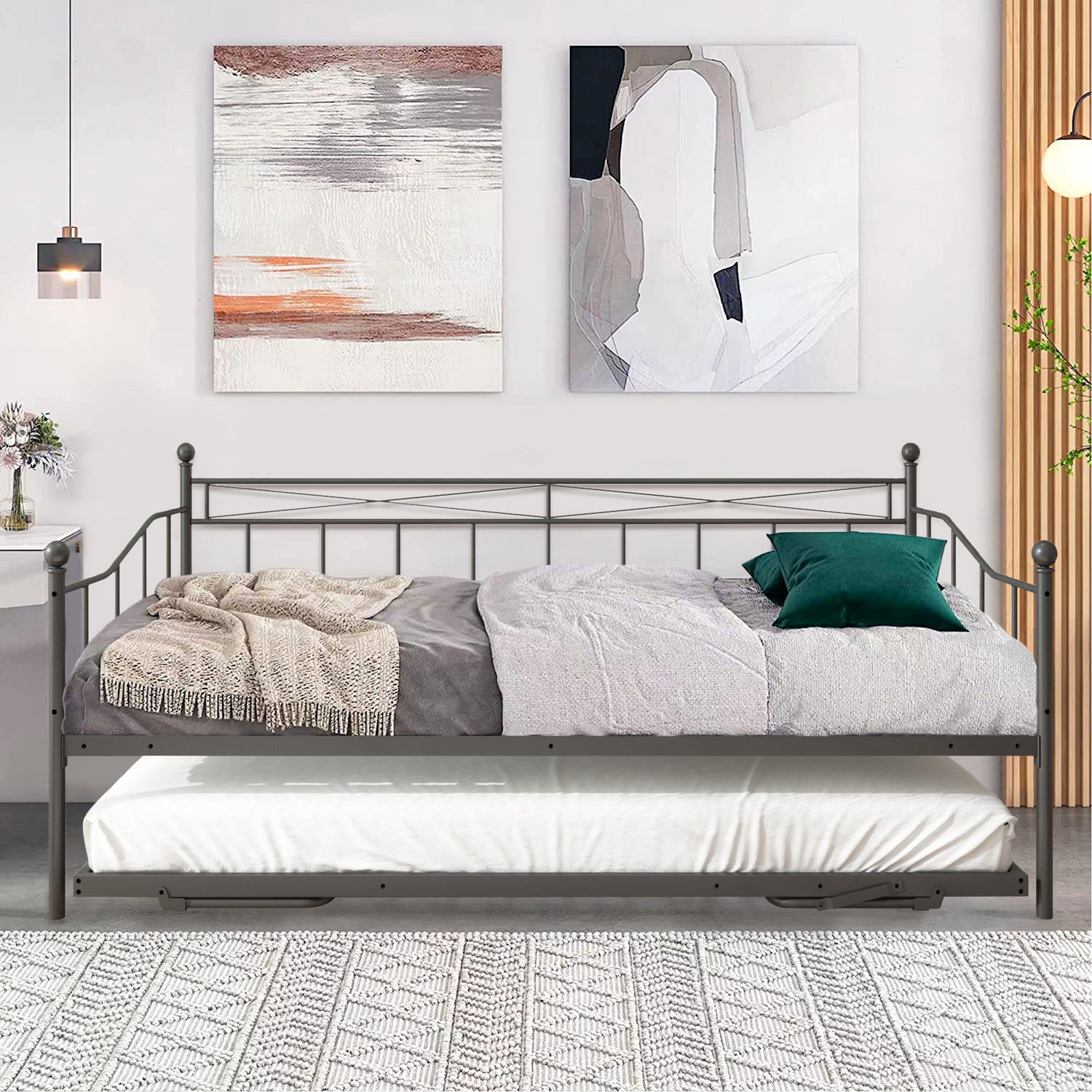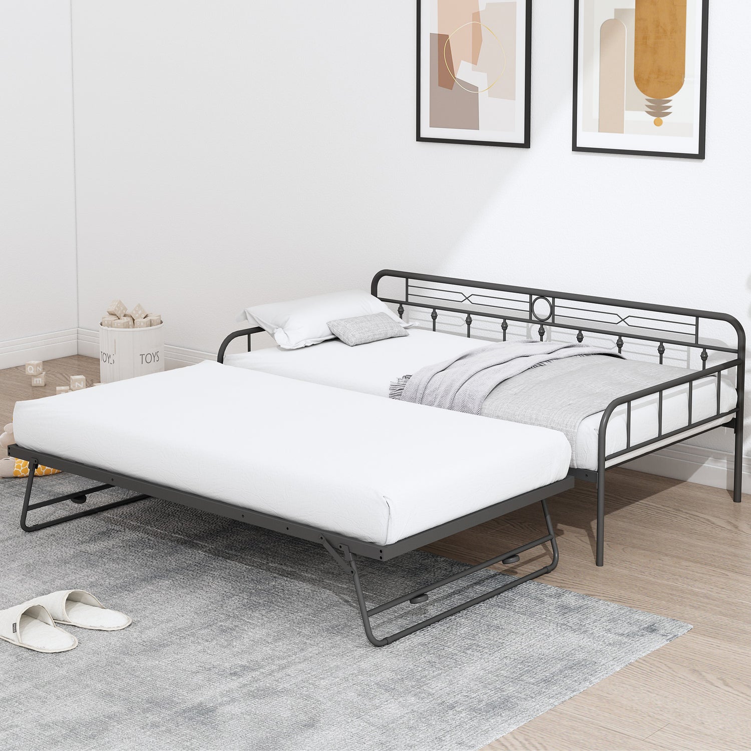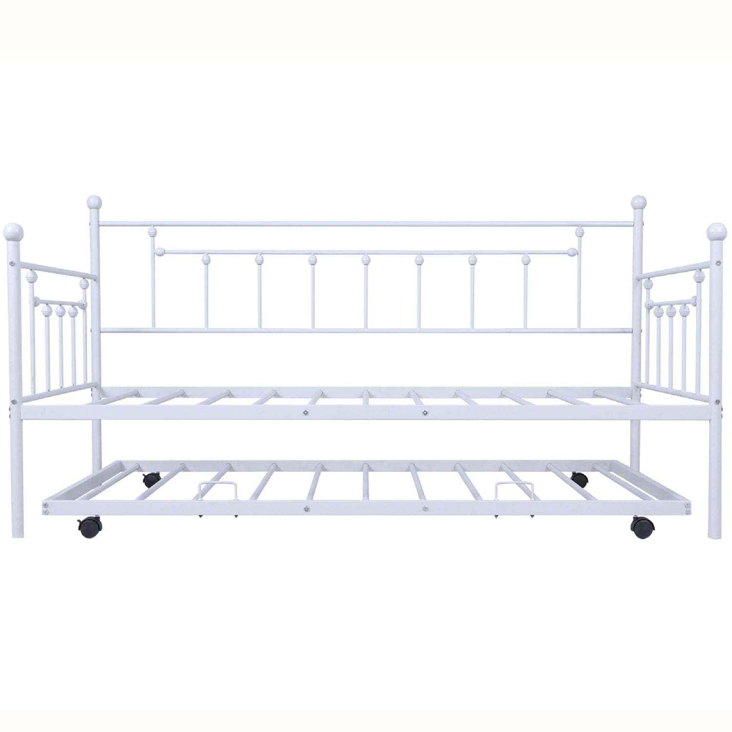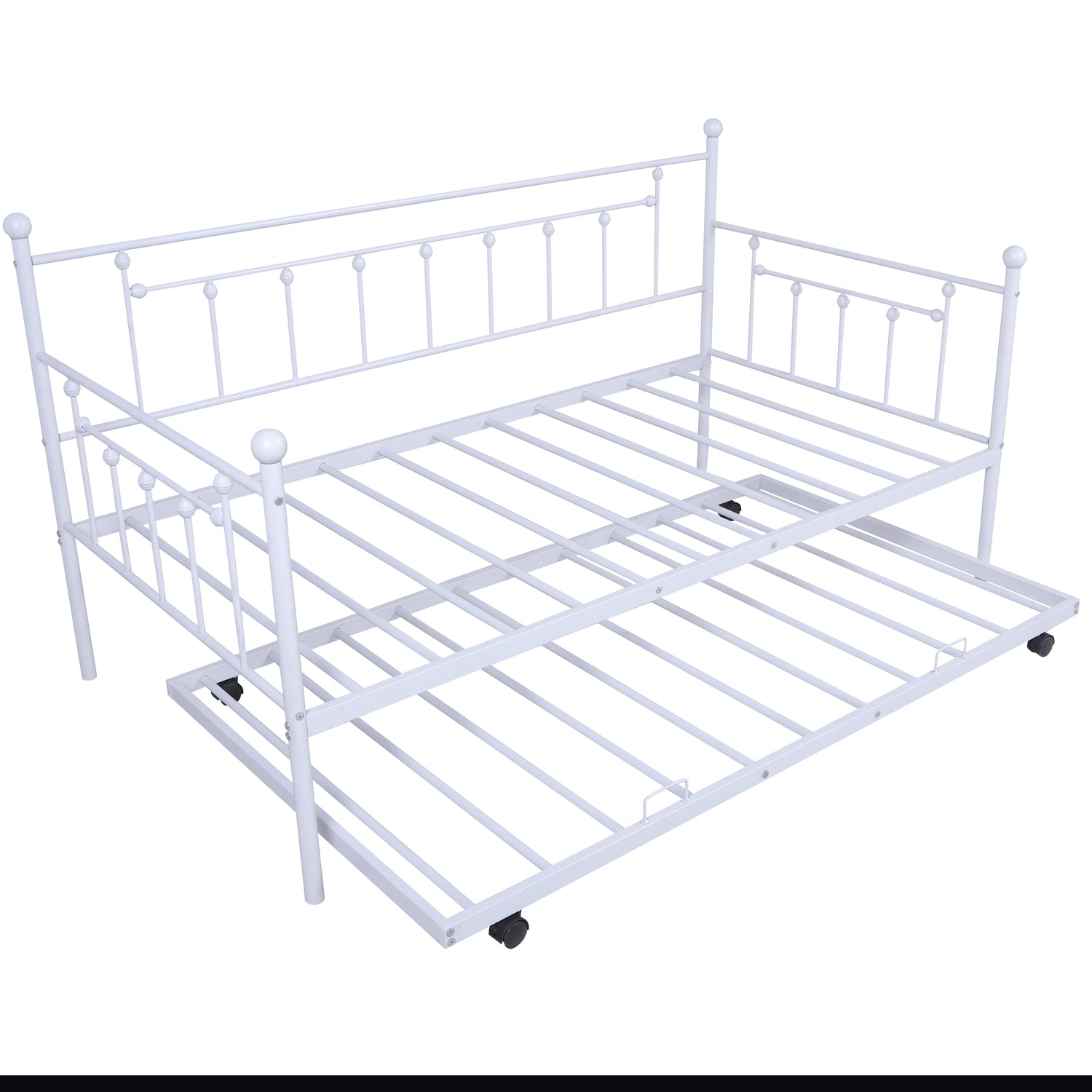 SYNGAR Daybed with Trundle, Twin Size Metal Daybed with Pop Up Trundle, Sofa Bed Day Beds Frame, Bedroom Living Room Furniture for Kids Boys Girls Adults Guest, White