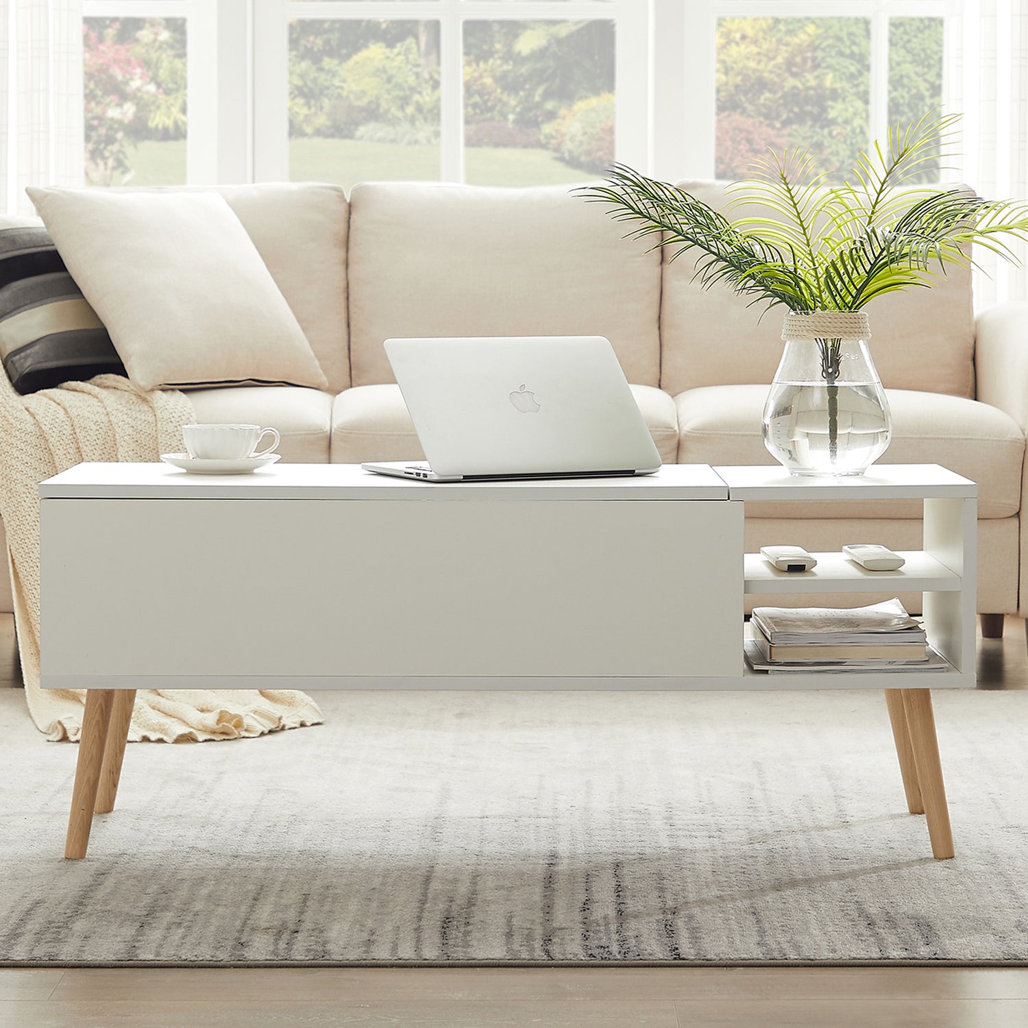 White Lift Top Coffee Tables for Living Room, Modern Coffee Table with Hidden Storage Compartment & Open Shelves, Dining Center Table Computer Desk Table for Office Reception Room
