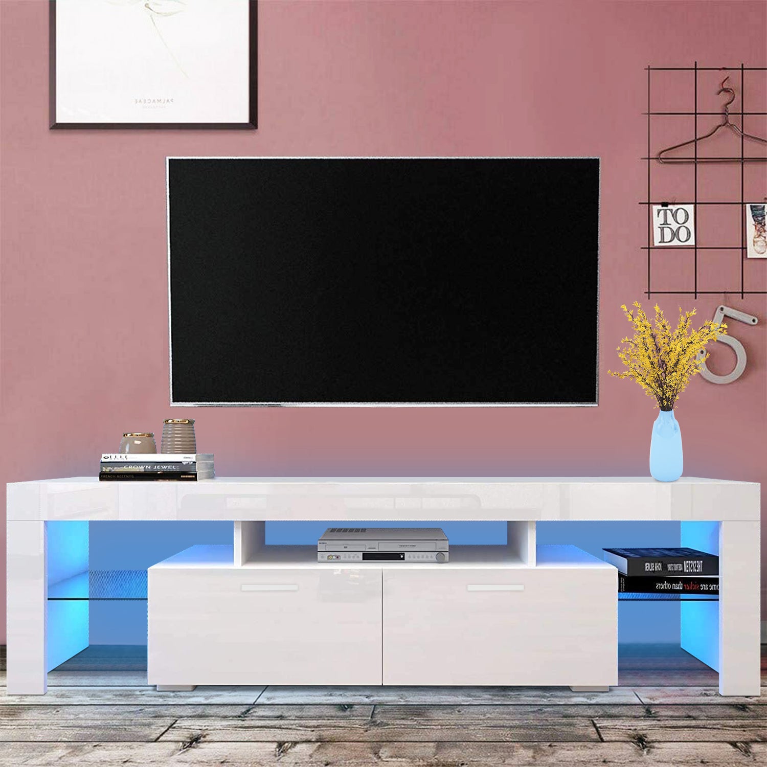 White TV Stand for 65 inch TV, Modern High Glossy Television Table Stands TV Cabinet Console Table with 16 Colors LED Lights, TV Buffet Cabinet with Storage, Living Room Entertainment Center