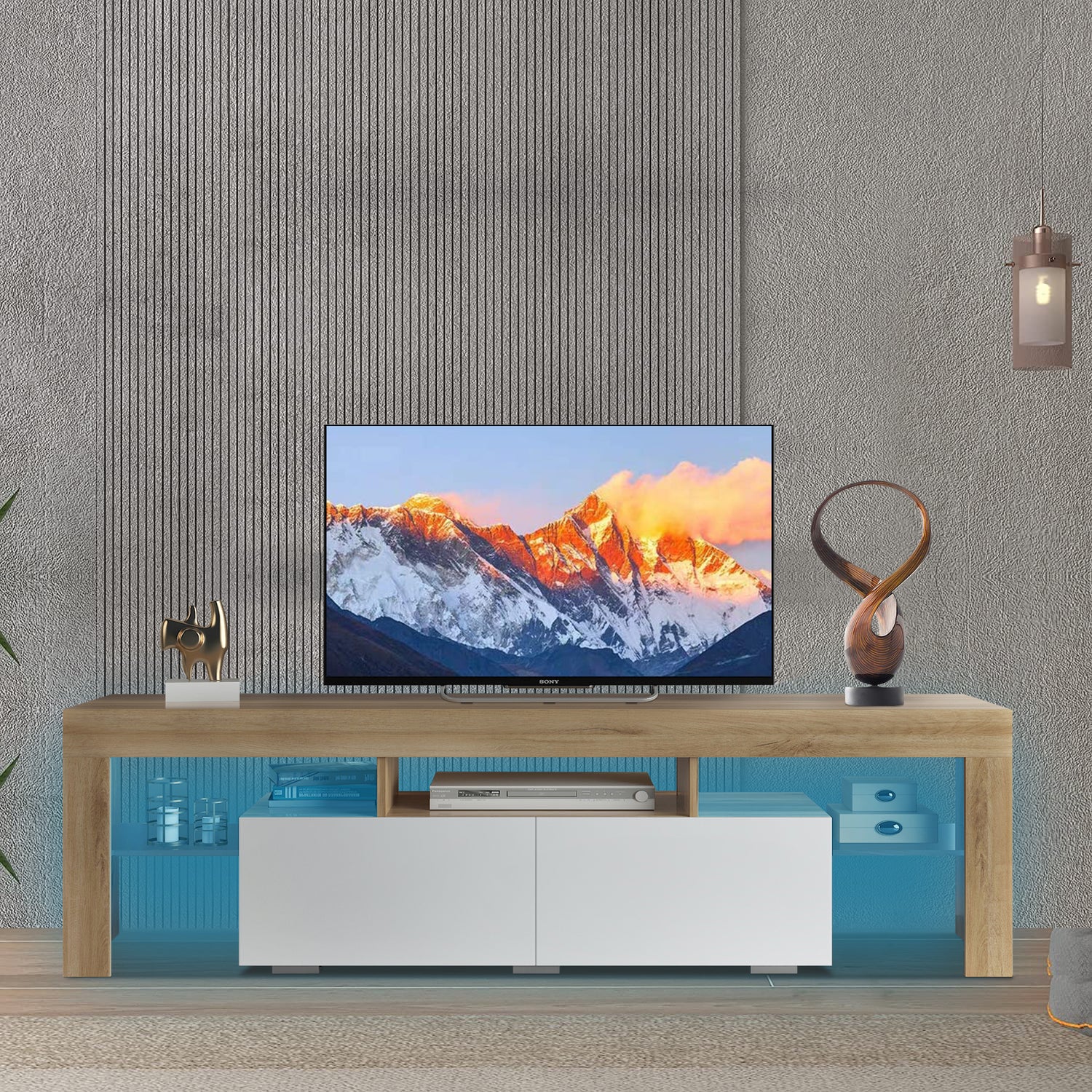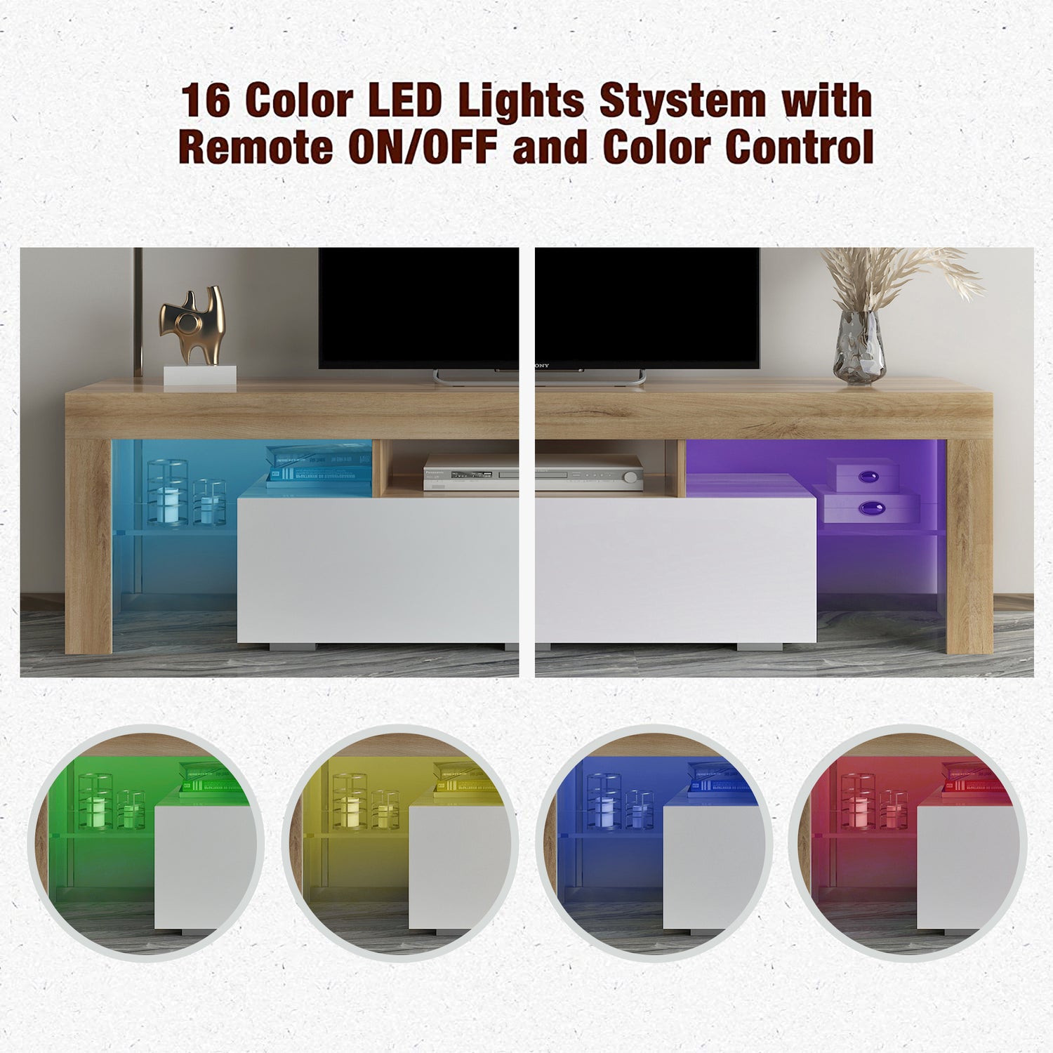 Remote Control LED Lights - The 16 colors of LED lights of this TV cabinet can be changed and adjusted remotely, which is convenient.