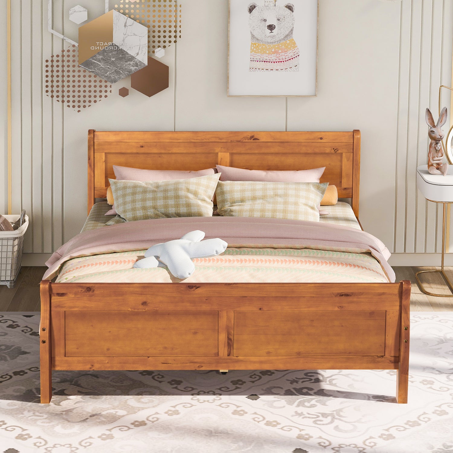 Sturdy Bed Frame - The strong wood frame includes a headboard, footboard, and solid wood slats to ensure security.