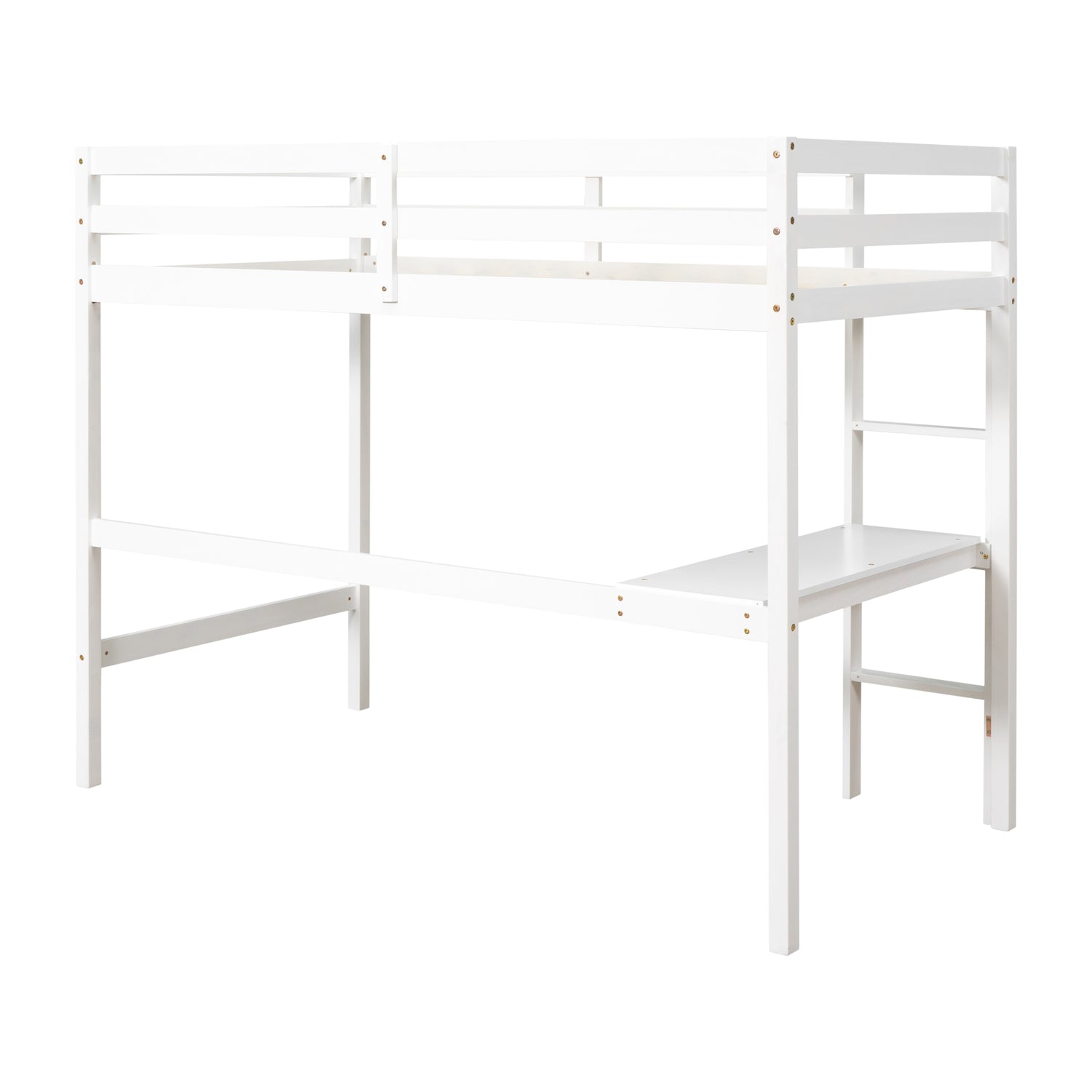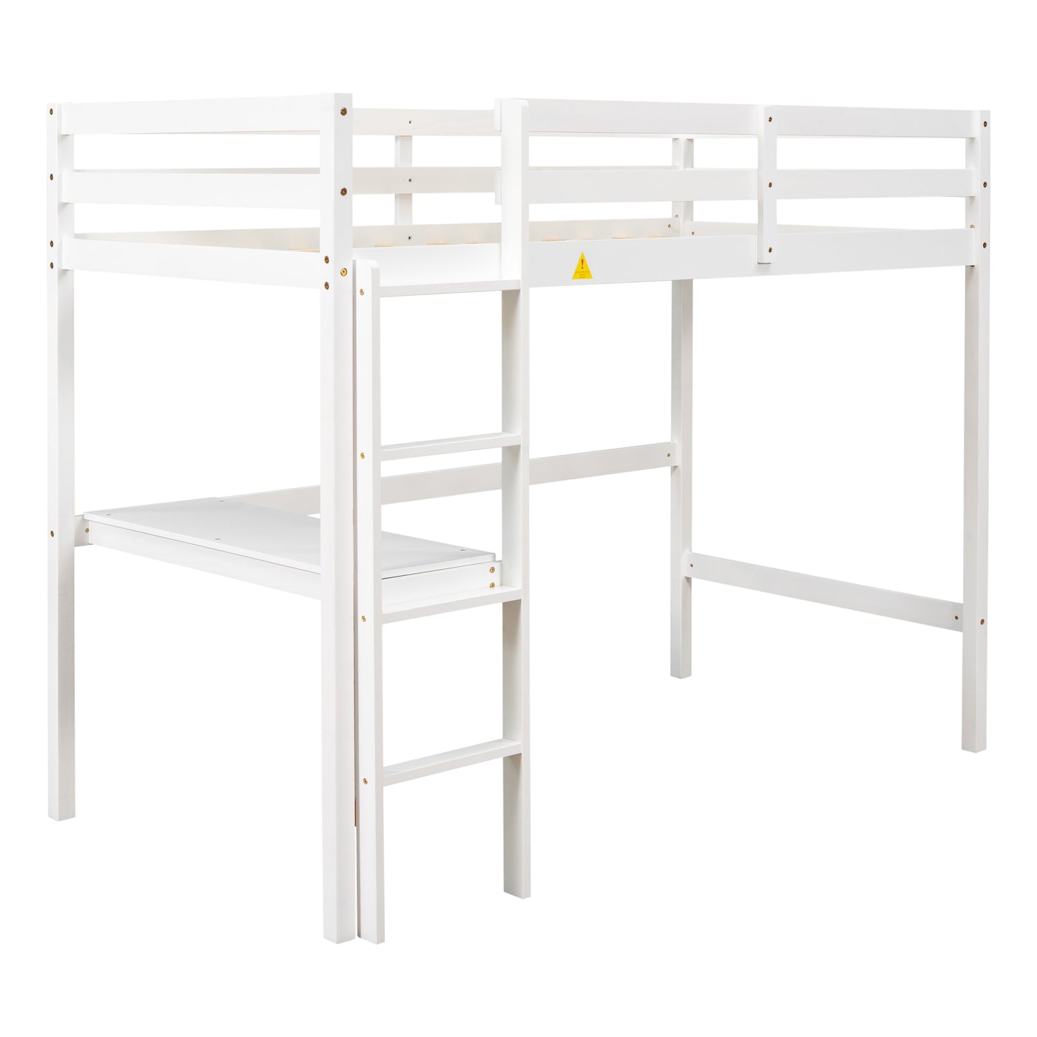 Wooden Twin Loft Bed with Desk, Twin Size Bunk Bed with Workstation Desk, Safety Rail, Wider Ladder for Kids Teens Adults, Space Saving Design, No Spring Box needed, White